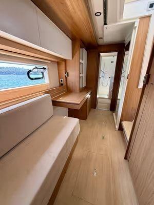 Pensé pour offrir une autonomie totale et un confort haut de gamme, il est équipé d’une climatisation réversible, d’un dessalinisateur, d’un groupe électrogène, de panneaux solaires et de grands réservoirs, idéals pour de longues croisières en toute sérénité.