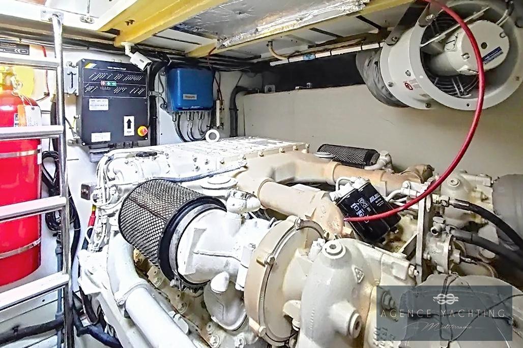 Motorisé par deux puissants moteurs V8 MAN de 800 chevaux chacun, totalisant environ 1 200 heures de fonctionnement, ce PRINCESS V58 offre un parfait équilibre entre performances, fiabilité et confort de croisière. Une motorisation reconnue pour sa robustesse, parfaitement adaptée à un programme de navigation soutenu, aussi bien en croisière rapide qu’en navigation longue distance.