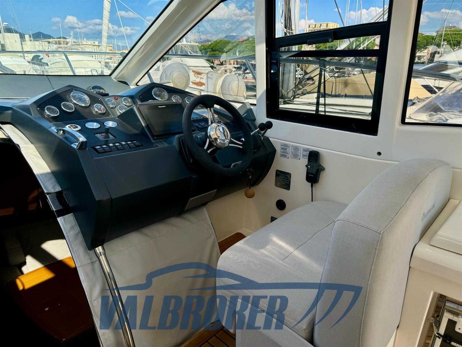 Eau sous pression, 5 Batteries, Douche de cockpit, Propulseur d'étrave (max power), Garage à annexe (idraulico), Hard top (elettro-idraulico), Passerelle (idraulica a scomparsa Besenzoni), Plateforme arrière (teak), Guindeau électrique, Echelle de bain, table de cockpit (teak).