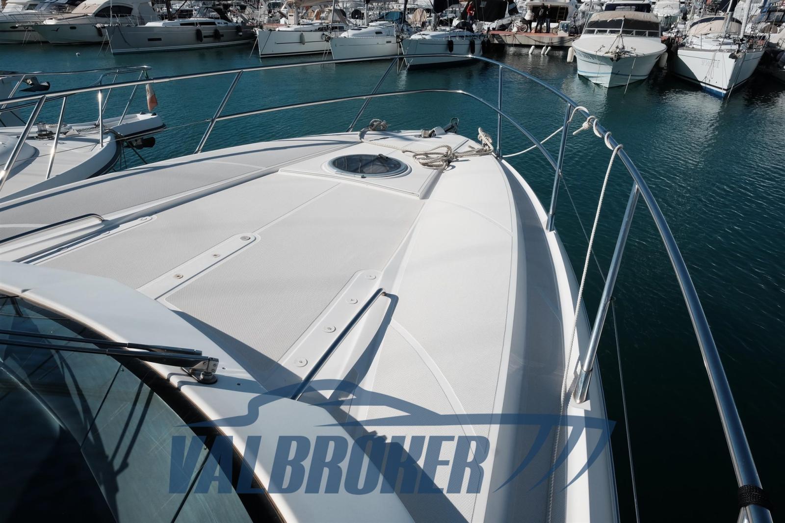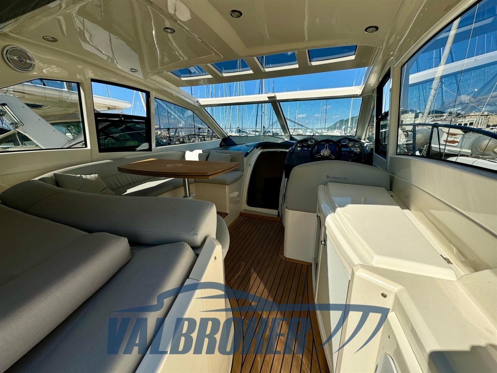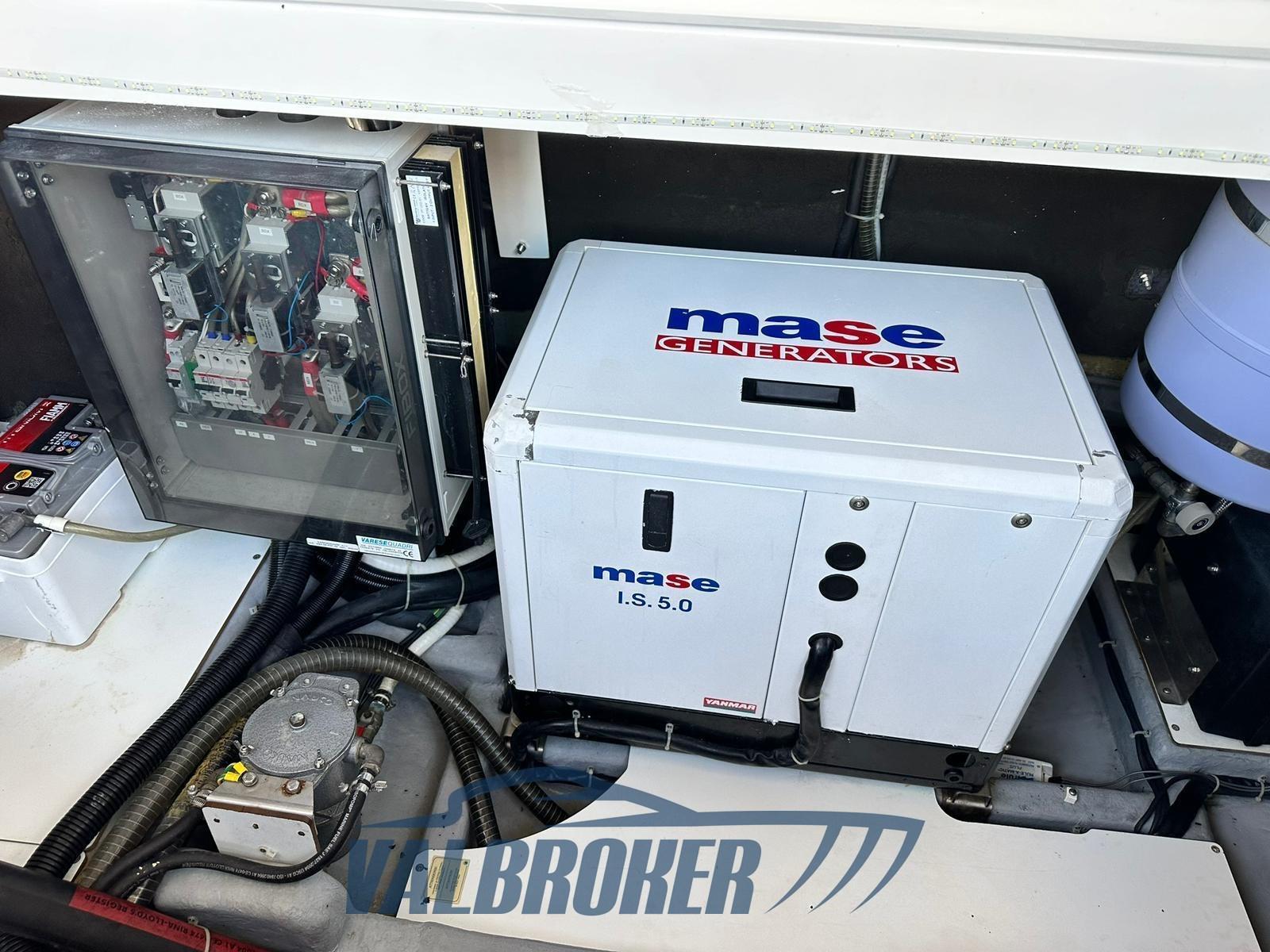 Magnifique toit rigide avec des lignes élégantes et très sportives. Enveloppé sur les côtés et sur le tableau de bord. Sous le pont, nous trouvons la cabine du propriétaire à l’avant, une cabine d’amis avec des lits plats et deux salles de bains. EN OPTION : générateur, climatisation, toit rigide électro-hydraulique, garage hydraulique, propulseur à proue. Nouveaux coussins et matelas internes. Sol de saloon en teck avec joints blancs !!