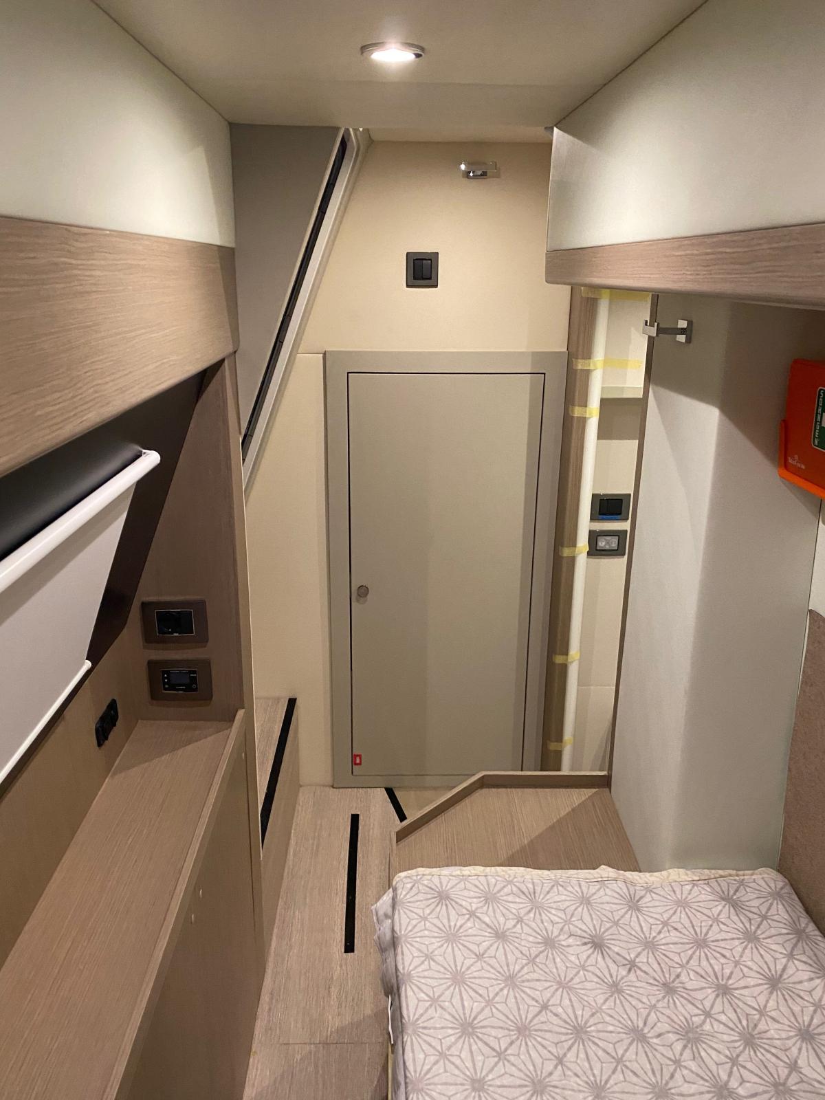 L’intérieur offre 3 véritables cabines avec salles d’eau privatives, dont une superbe cabine propriétaire pleine largeur, ainsi qu’une cabine skipper indépendante