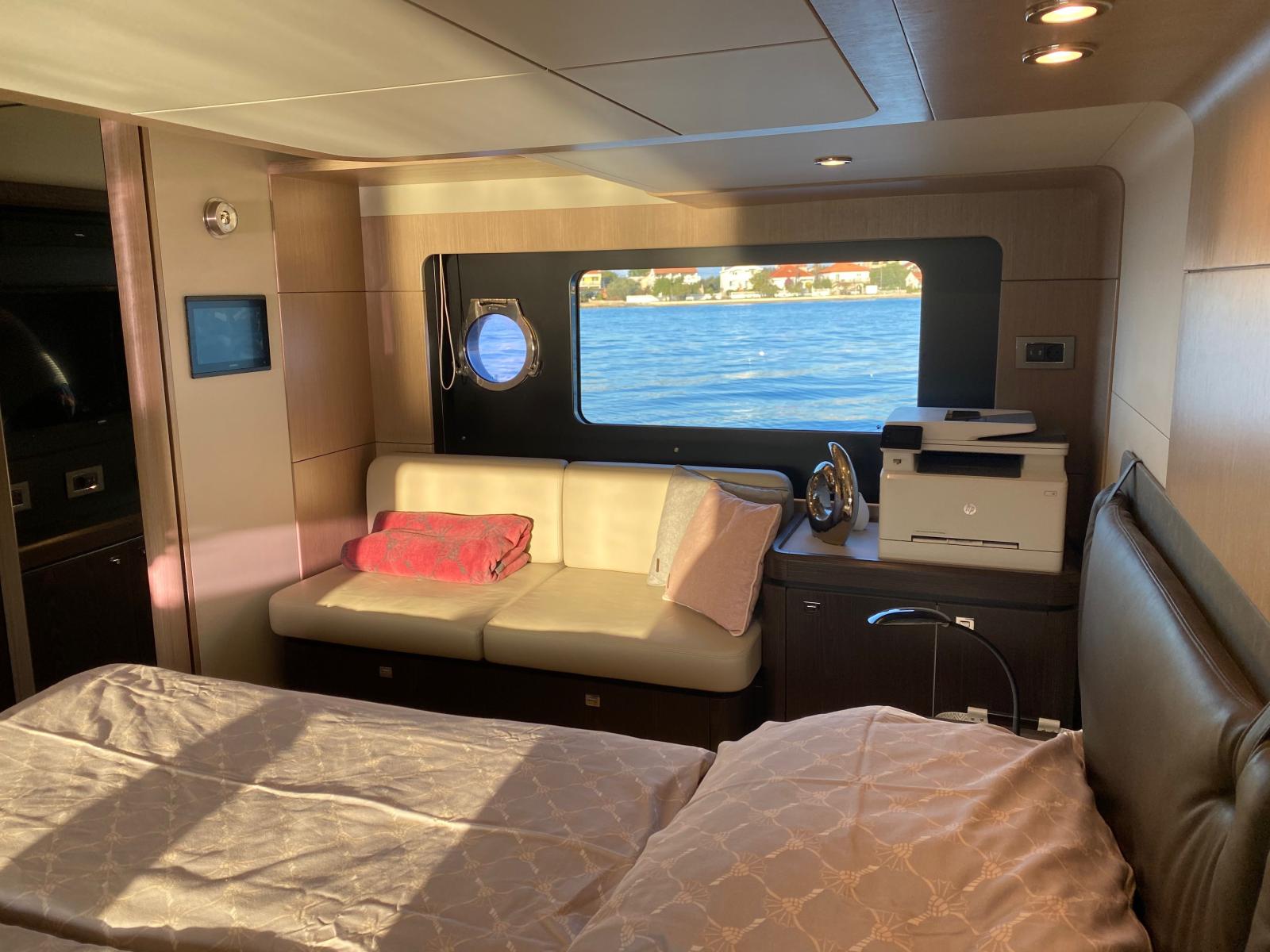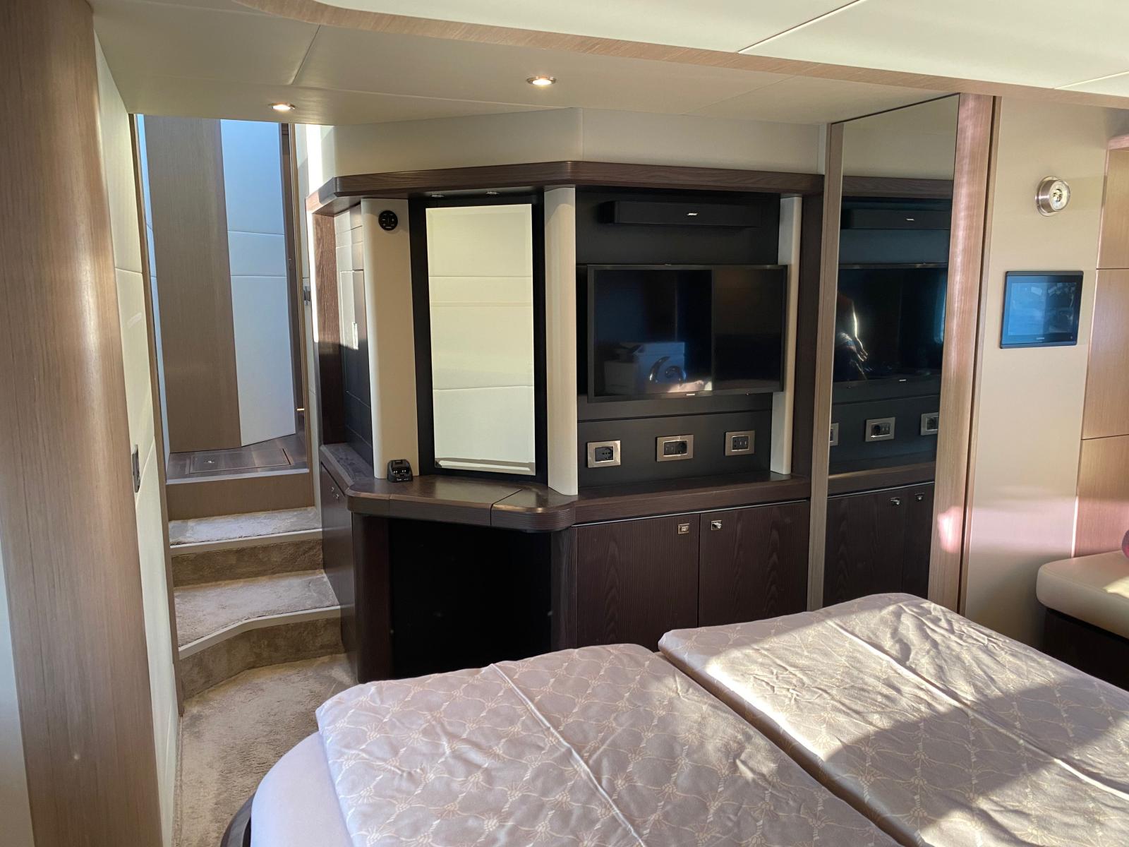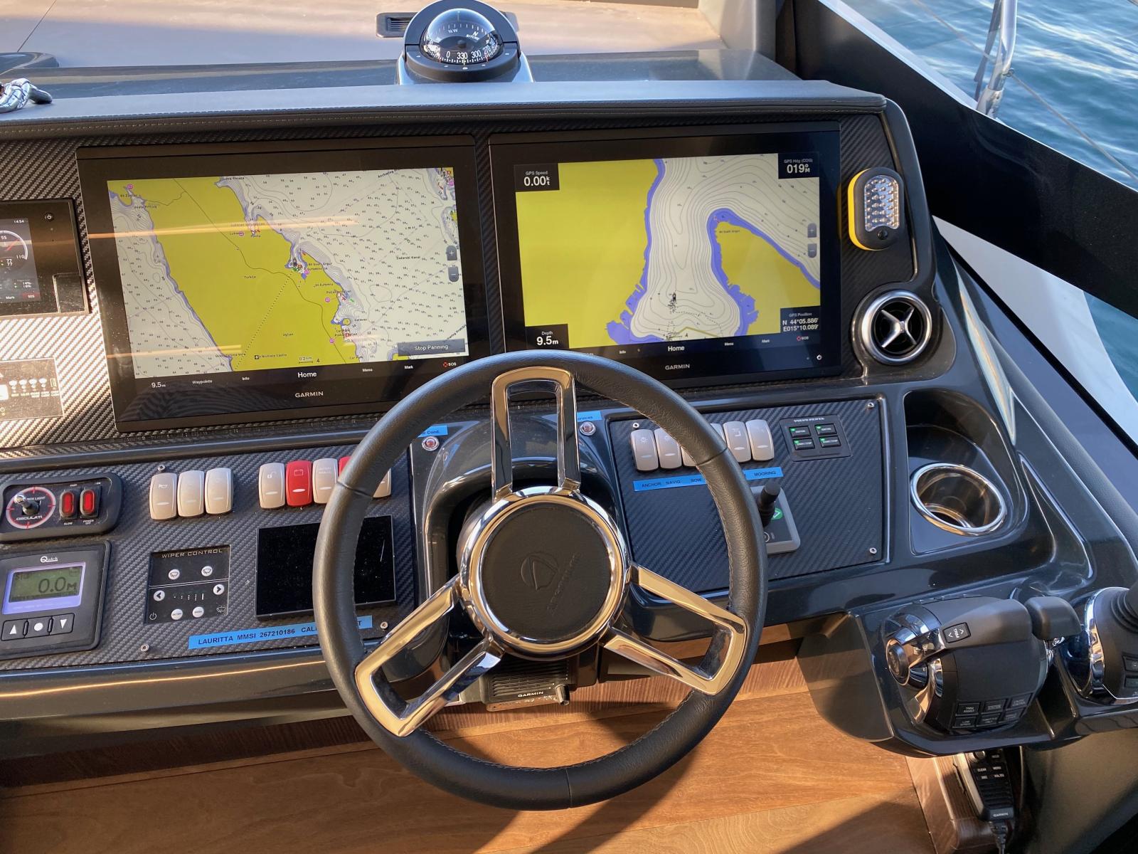Modèle très équipé : Seakeeper 9, Dessalinisateur 180 l/h, Yachtcontroler, Volvo DPS, 3eme poste joystick, antenne satellitaire, plateforme hydraulique..