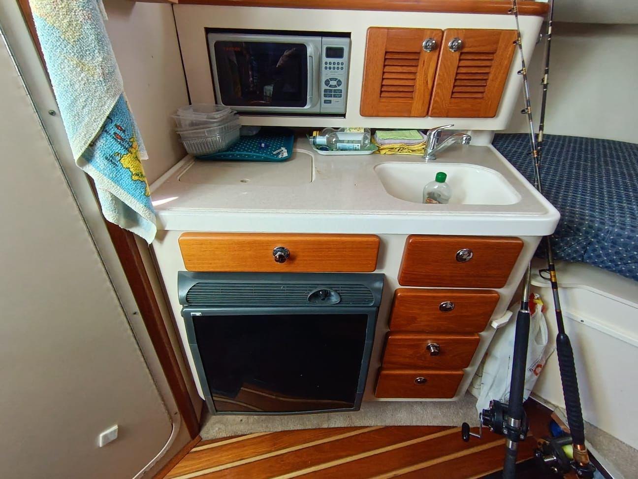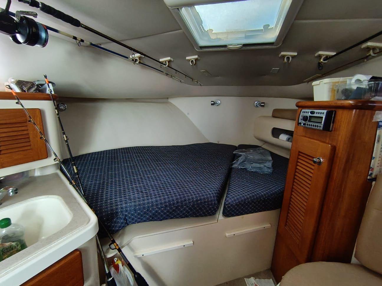 Cuisine, coussins de poupe, réfrigérateur interne et externe, porte-cannes, draps de fermeture en T-top, réservoir de chauffage, toilettes marines électriques