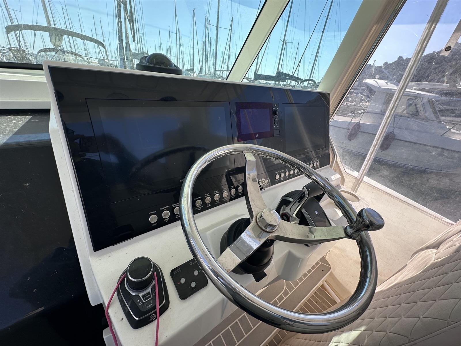 AIS, Indicateur d'angle de barre, Compteur de chaîne, Compteur d'heures, DSC VHF, Fax, Cartes et guides (Cartografia Bluechart), 2 Plotter GPS (Garmin 8416 16”), Siège copilote.
