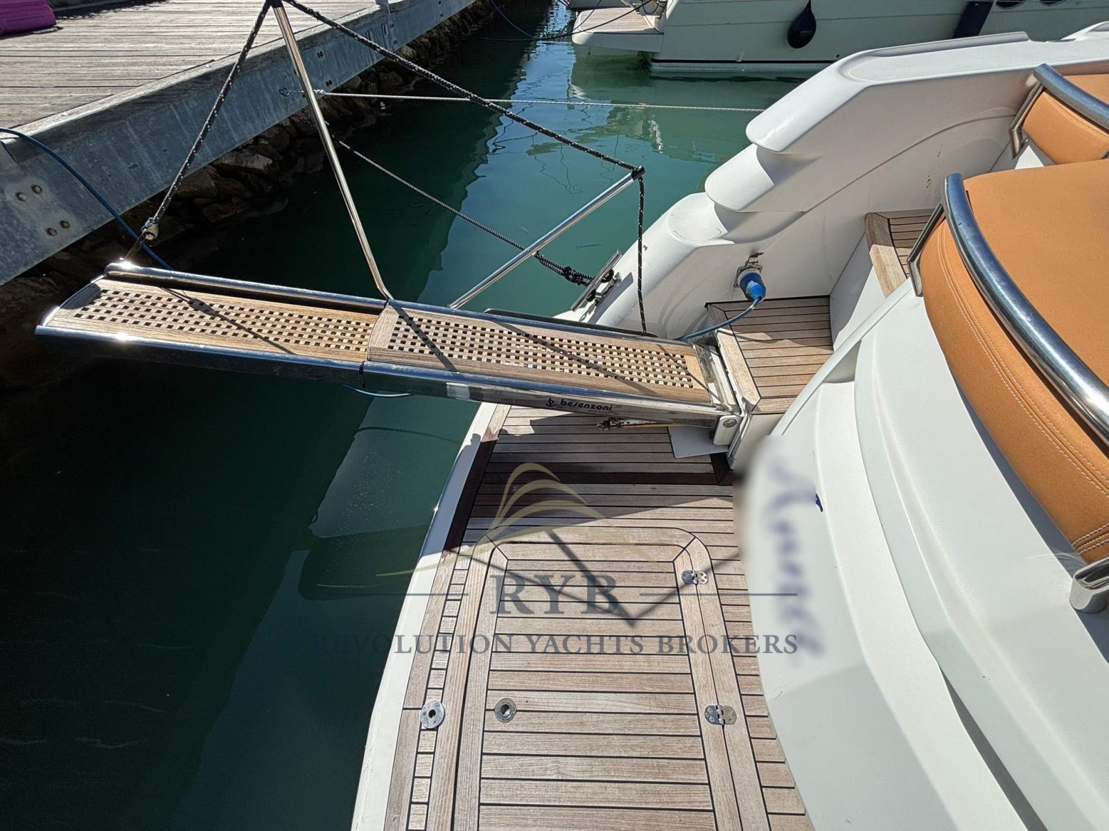 Batteries (2024/2025), Flaps électriques, Garage à annexe, Éclairage de courtoisie (LED), Spots sous-marins (POPPA E LATERALI), Moteur hors-bord pour annexe, Passerelle (TEAK BESENZONI - IDRAULICA A SCOMPARSA), Cockpit en teck, Prise de quai, Guindeau électrique, Echelle de bain, table de cockpit, Table pliante de salon, Annexe.