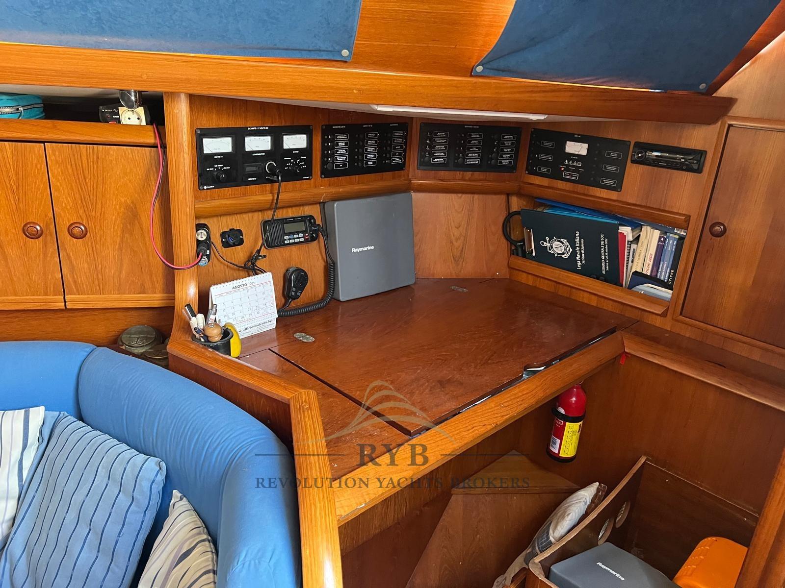 Batteries (2023), Passavant en teck, Double barre à roue, Bossoir pour HB, Passerelle, Pont en teck, Porte latérale, Cockpit en teck, Prise de quai, Guindeau électrique (revisionato 2021 + rimando in in pozzetto), Gréement monotoron, table de cockpit, Windex.
