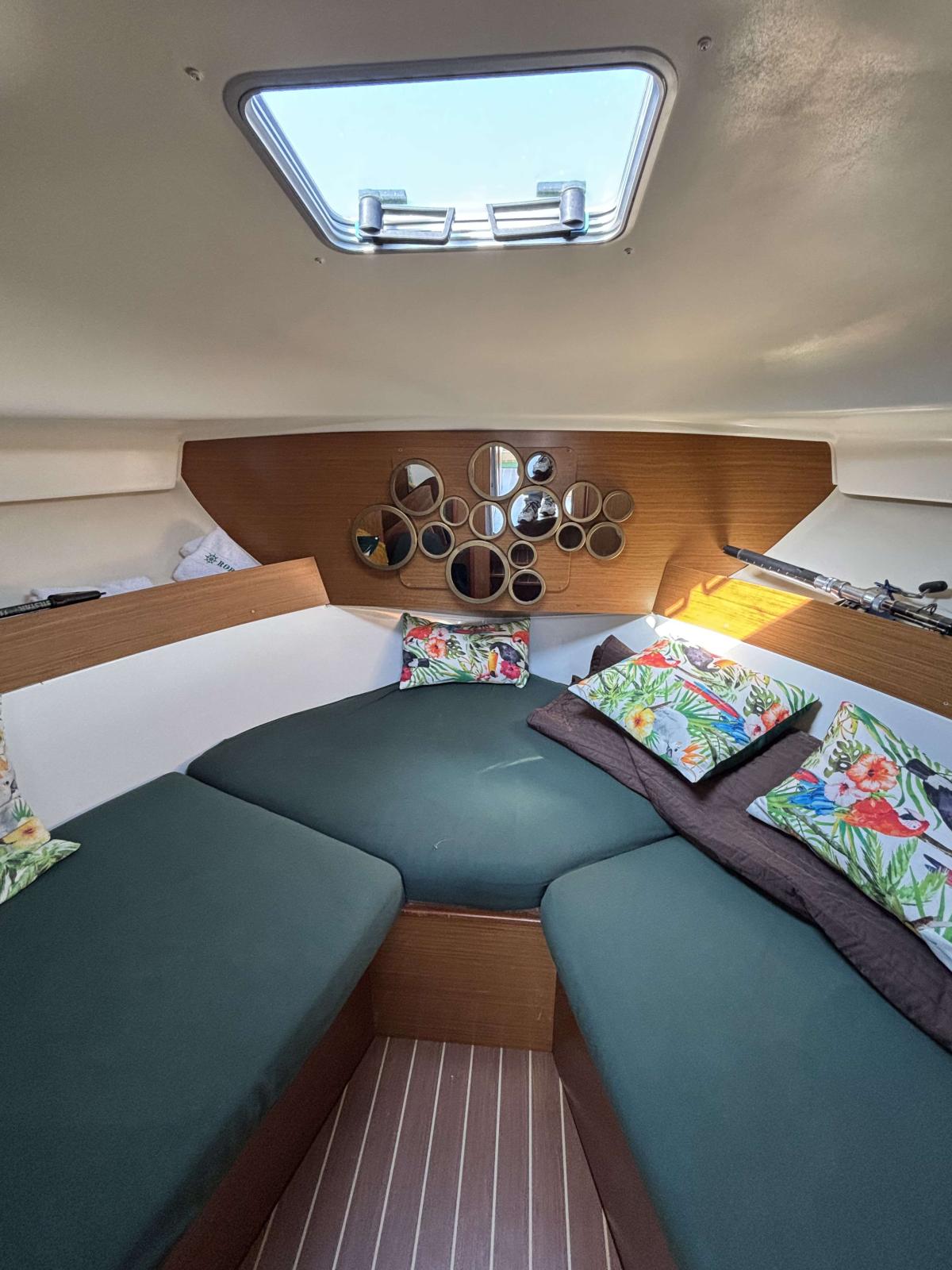 Le bateau dispose de plusieurs couchages, d’un coin cuisine fonctionnel, ainsi que d’une salle d’eau, parfait pour des escapades de plusieurs jours. Sa motorisation fiable garantit de bonnes performances tout en restant économique à l’usage.