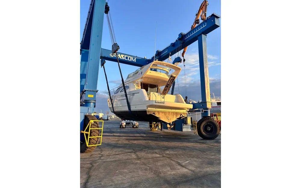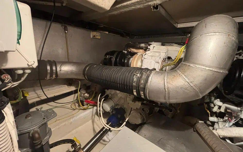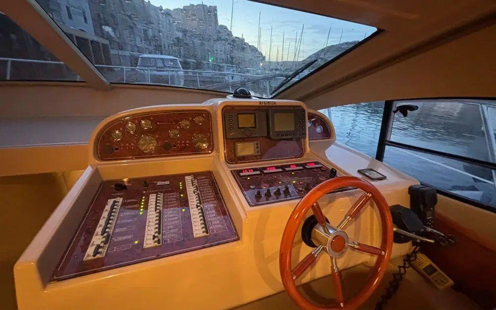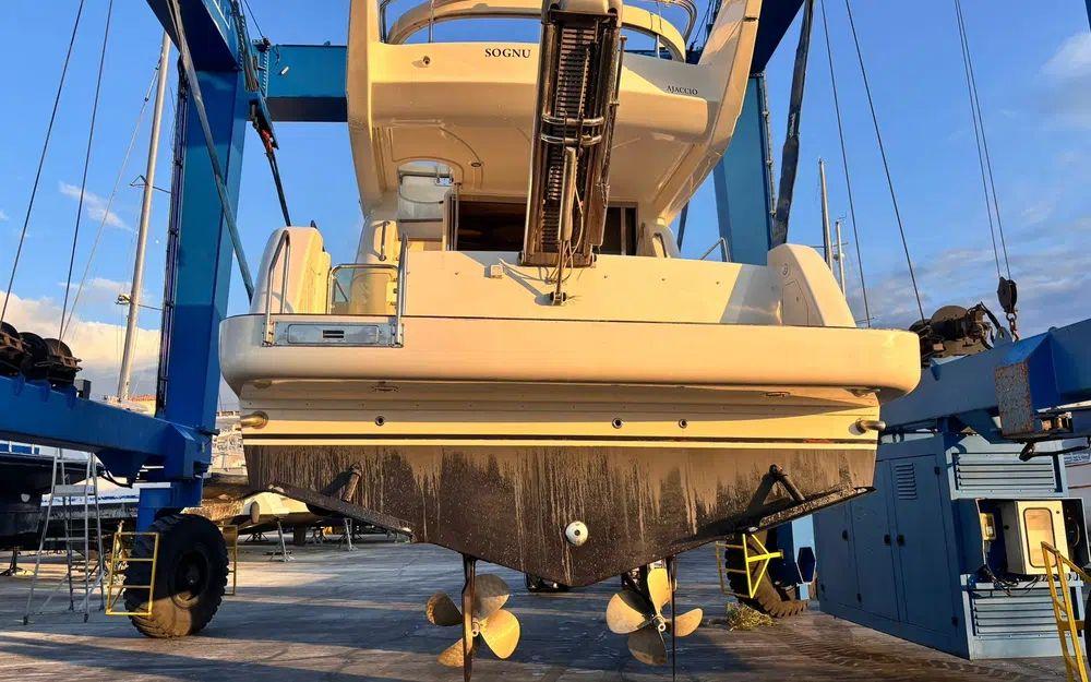 Des travaux importants ont été réalisés récemment, garantissant une mise à niveau technique complète. Les vidanges ont été effectuées, les bagues d’arbres remplacées, l’ensemble des vannes changé, les anodes renouvelées, les échangeurs nettoyés et révisés. Les presses-étoupes ont été remplacées par des systèmes Profiseal, reconnus pour leur fiabilité. Les selleries du flybridge et du bain de soleil ont également été remplacées.