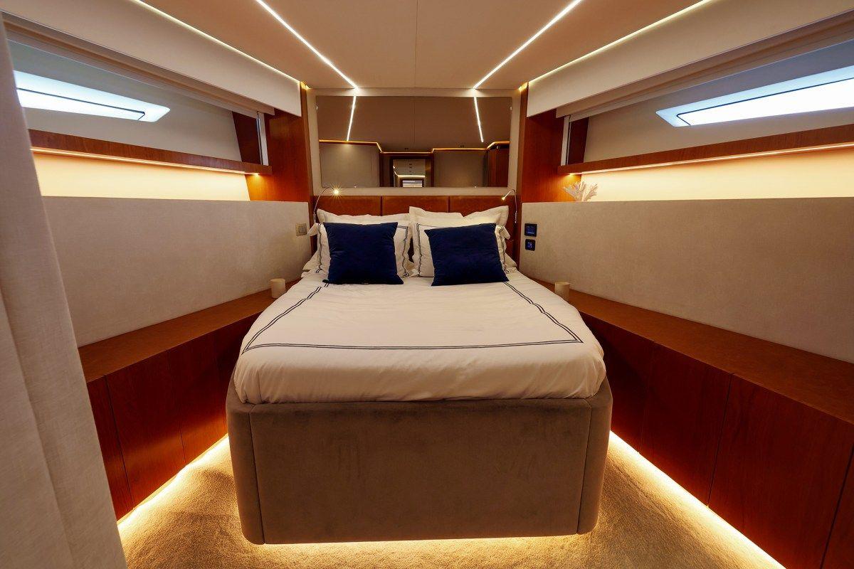 L'intérieur de l'Okean 80 allie luxe, espace et technologie moderne. Il dispose de systèmes de pointe conçus pour privilégier le confort des invités et l'efficacité énergétique. Chaque détail est minutieusement conçu pour garantir une expérience de navigation fluide. Des salons spacieux aux matériaux soigneusement sélectionnés, l'Okean 80 offre un environnement relaxant et élégant.