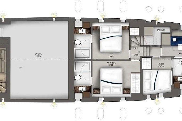 Présentation du superbe 2025 Picchiotti GENTLEMAN 24, un yacht à moteur remarquable qui incarne le luxe et la performance. Avec une longueur totale de 23,96 mètres, ce nouveau navire dispose d'une coque en aluminium semi-déplaçante élégante, assurant à la fois stabilité et élégance sur l'eau. Propulsé par deux moteurs MAN D2862 LE446 V8-1300, chacun délivrant une puissance de 1300 chevaux, le yacht atteint une vitesse de croisière de 16 nœuds et une vitesse maximale de coque de 19 nœuds avec une très faible consommation. À 10/11 nœuds, l'autonomie est de 1200 miles. Accueillant 3 cabines invités avec salle de bain privée et 2 cabines d'équipage avec salle de bain, le GENTLEMAN 24 est conçu pour le confort et la commodité, ce qui le rend parfait pour les voyages prolongés en famille ou entre amis. Entièrement équipé, ce yacht combine technologie moderne et fonctionnement sans effort, améliorant votre expérience sur l'eau. Le Picchiotti GENTLEMAN 24 est vraiment un chef-d'œuvre.