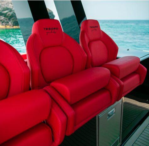 La série Tesoro T40 IB Black se distingue par son style audacieux et ses coussins rouges saisissants, combinant harmonieusement le design avec un confort exceptionnel. Ce modèle 2023 offre de vastes espaces extérieurs et un intérieur étonnamment spacieux, avec un salon principal convertible, une grande cabine centrale et une salle de bains complète pour un confort ultime.
