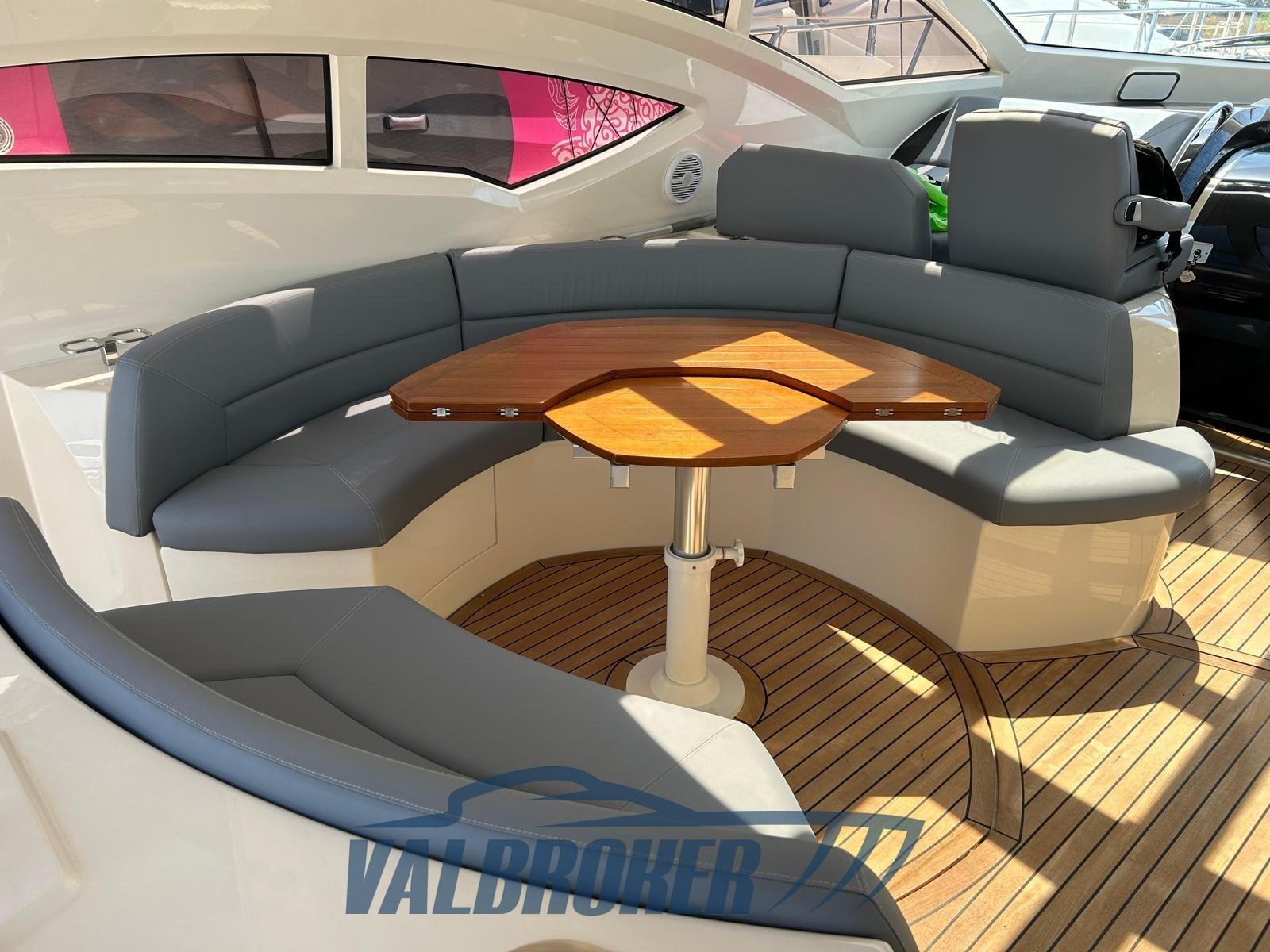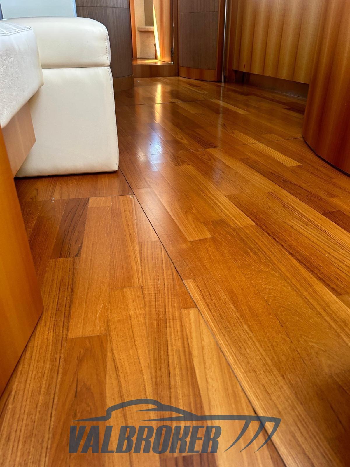 Eau sous pression, 6 Batteries (2023), Douche de cockpit, Indicateurs de flaps (Lenco), Passerelle (idraulica a scomparsa, teak), Plateforme arrière (teak), Cockpit en teck, table de cockpit (teak).
