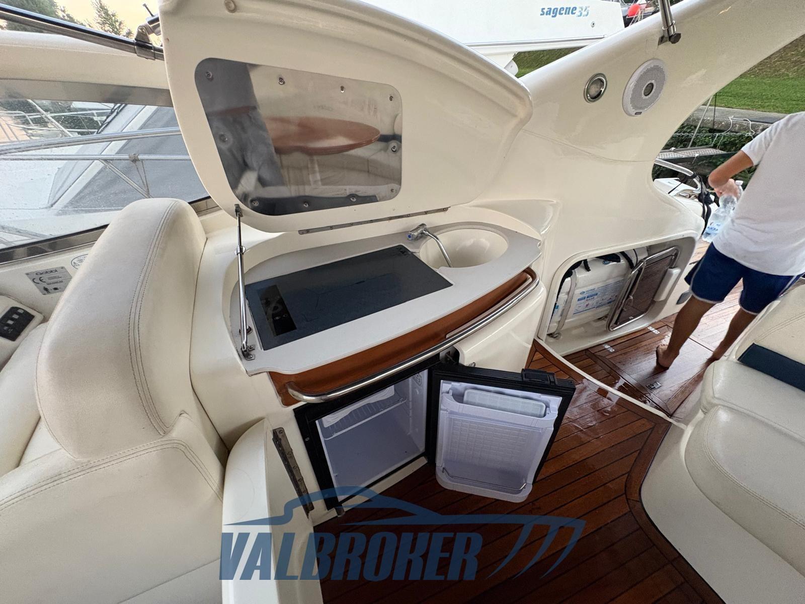 Année modèle 2005. Maintenu en excellent état, toujours au sec en hiver avec une bâche thermorétractable. Entretien régulier, ordinaire et extraordinaire. 2x Volvo Penta KAD 300 turbo diesel 6 cylindres. En option complète : générateur, climatisation chaud/froide, propulseur à proue.