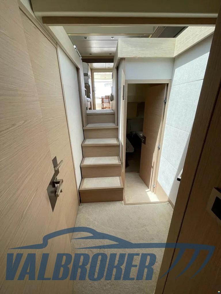 Siège pilote en PVC, sellerie en cuir beige dans le salon, Vitres latérales de la timonerie (gauche et droite) avec ouverture électrique, WI-FI, lavage de pont, chaises pliantes en teck en édition spéciale, ensemble de coussins décoratifs intérieurs et extérieurs