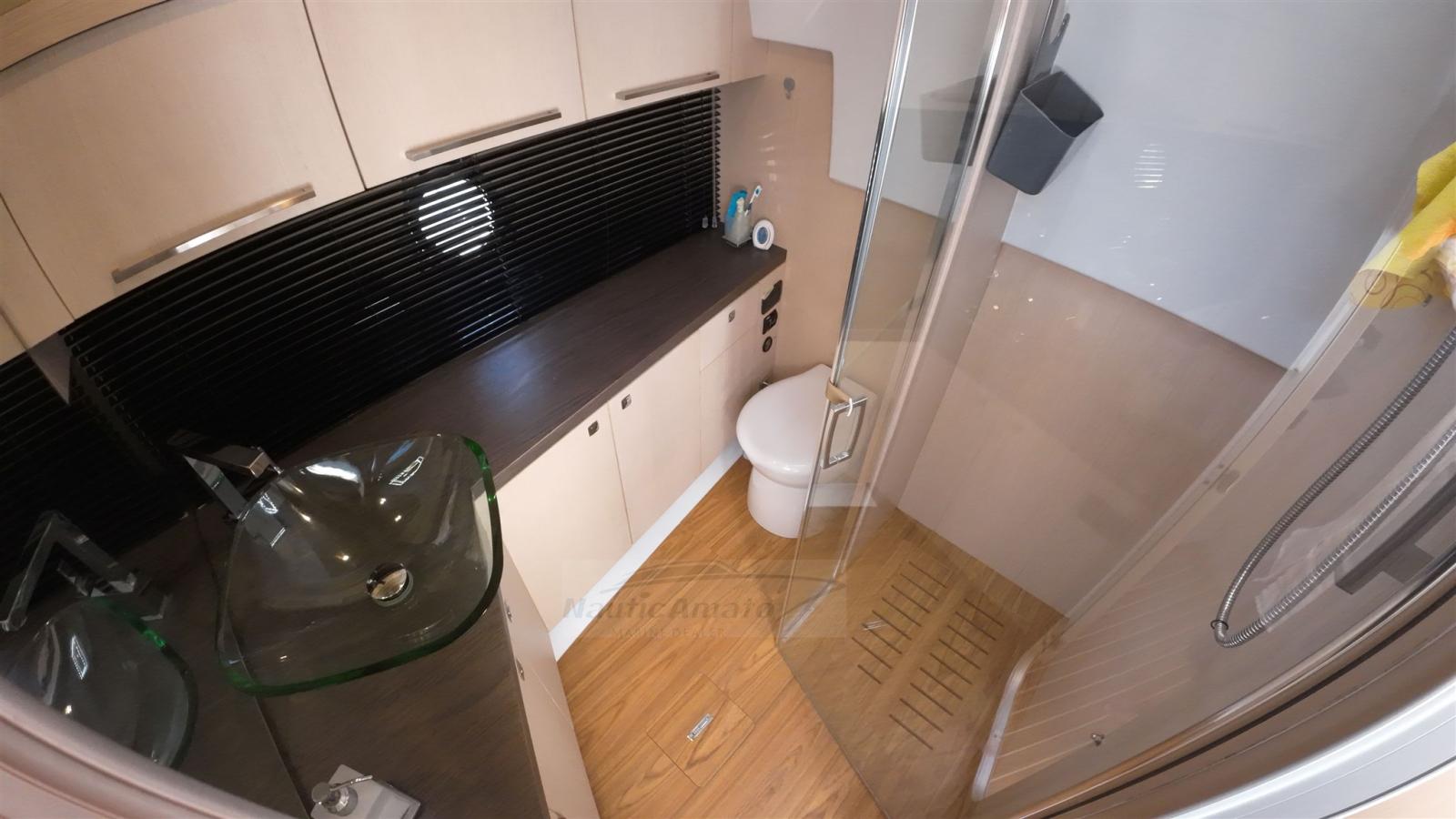 Alarme moteur, Eau sous pression, Câble d’alimentation à quai, Douche de cockpit, Flaps électriques, Hard top, Extincteur(s) fixe(s), Indicateurs de flaps, Lavabo dans le cockpit, Éclairage de courtoisie, Spots sous-marins, Défenses, Passerelle (idraulica besenzoni ( 2023 )), Plateforme arrière, Pompe de cale automatique, Pont en teck, Porte latérale, Cockpit en teck, Prise de quai, Guindeau électrique, Echelle de bain, table de cockpit (sollevamento elettrico ad incasso nel piano calpestio).