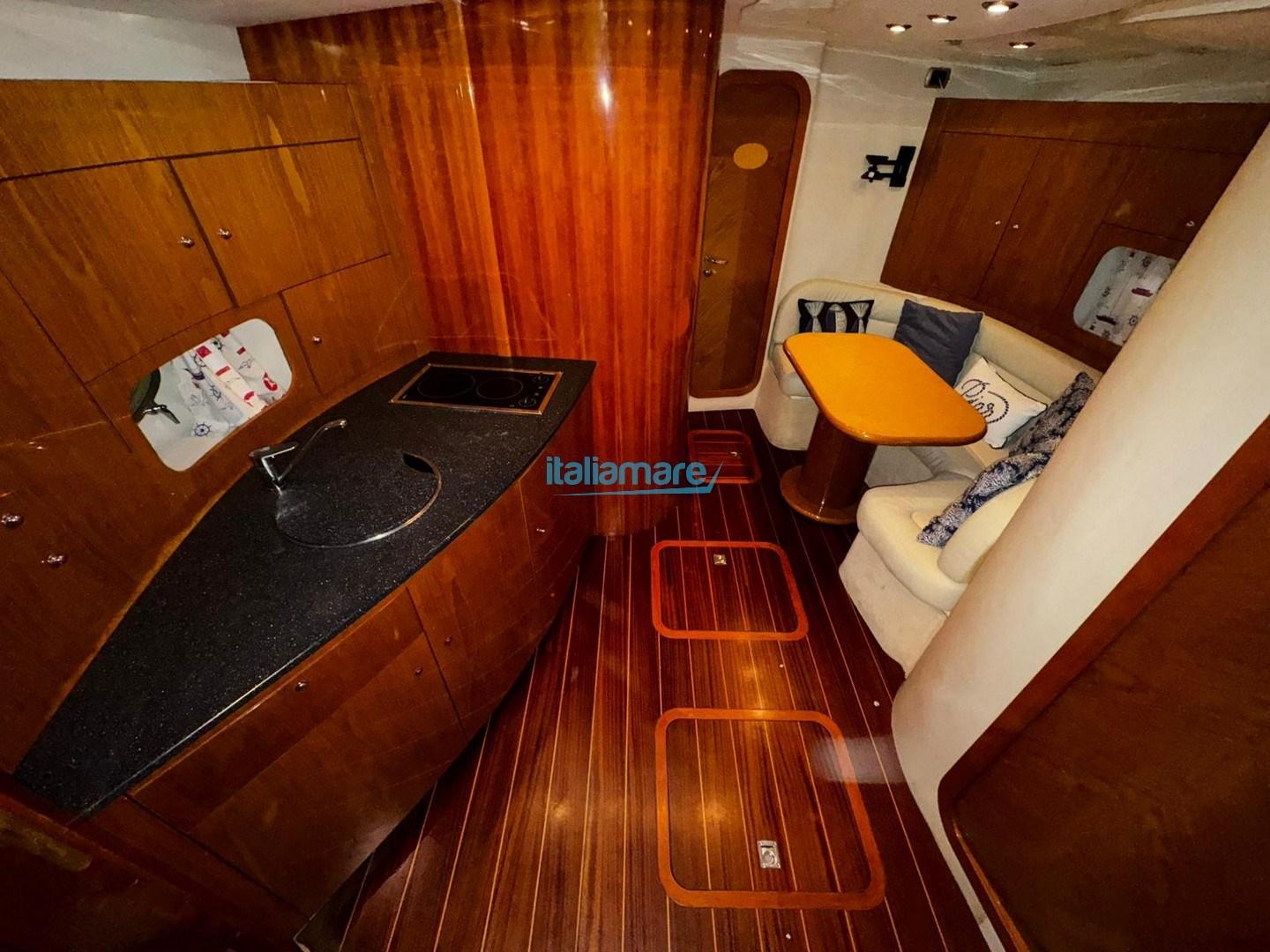 Le Mira 43 d’Innovations et de Projets est un open italien emblématique au profil élégant et à un cockpit extrêmement spacieux, véritable cœur battant du bateau, équipé d’un grand canapé en forme de U, d’une table pouvant être transformée en terrasse de soleil et d’un meuble bar extérieur qui rend la vie extérieure fluide et conviviale.