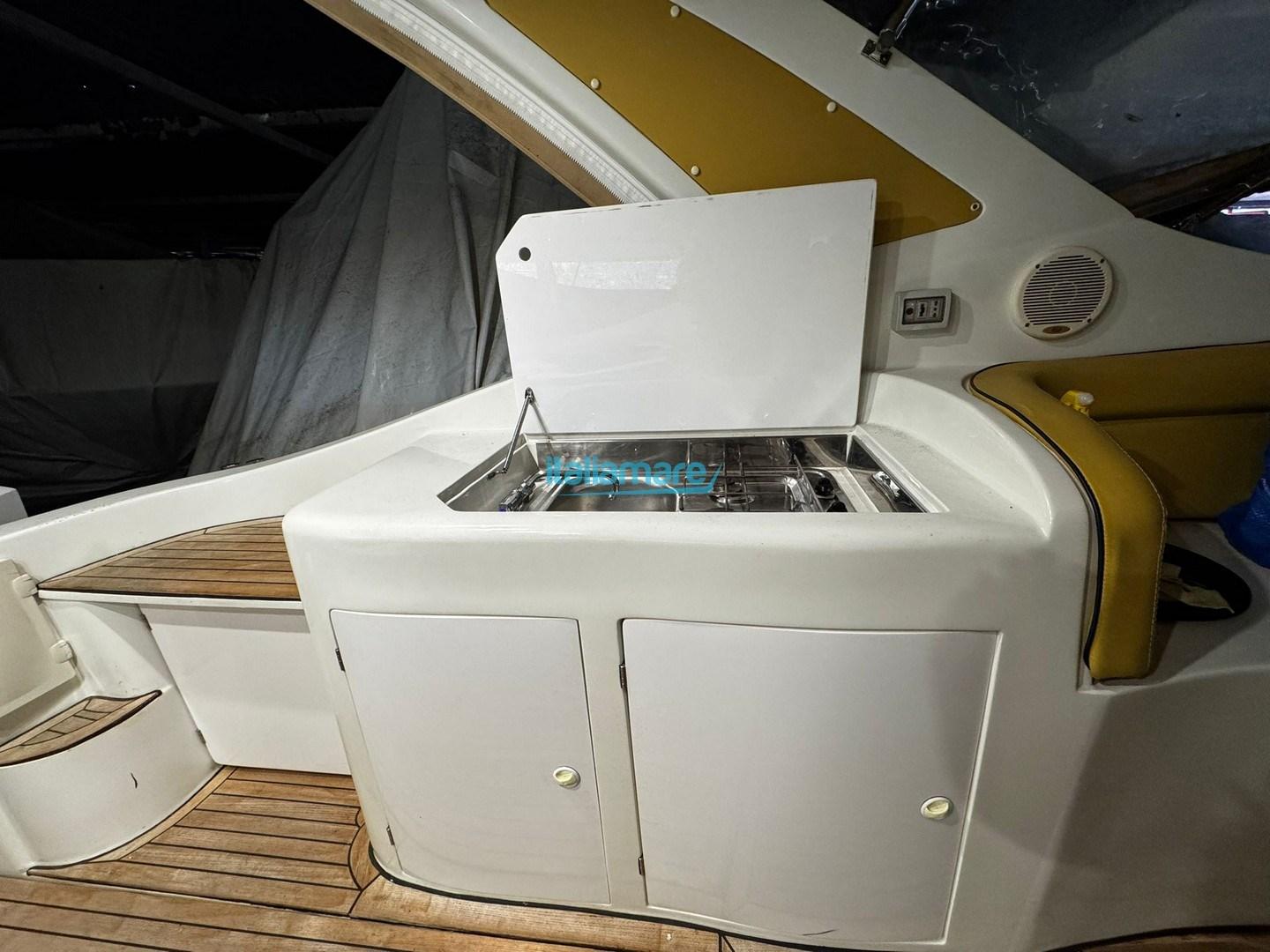 Alarme moteur, Alarme de pompe de cale, Eau sous pression, Douche de cockpit, Flaps électriques, Hard top, Lavabo dans le cockpit, Éclairage de courtoisie, Passerelle, Plateforme arrière (in teak), Pompe de cale automatique, Cockpit en teck, Prise de quai, Connexion eau sous pression à quai, Guindeau électrique, Echelle de bain, table de cockpit.