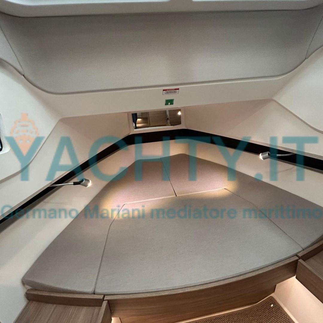 Bimini (tendalino con pali in carbonio a poppa), Sellerie complète, Coussins arrieres (divani trasformabili in prendisole a poppa), Coussin avant, sellerie de cockpit, Matelas.