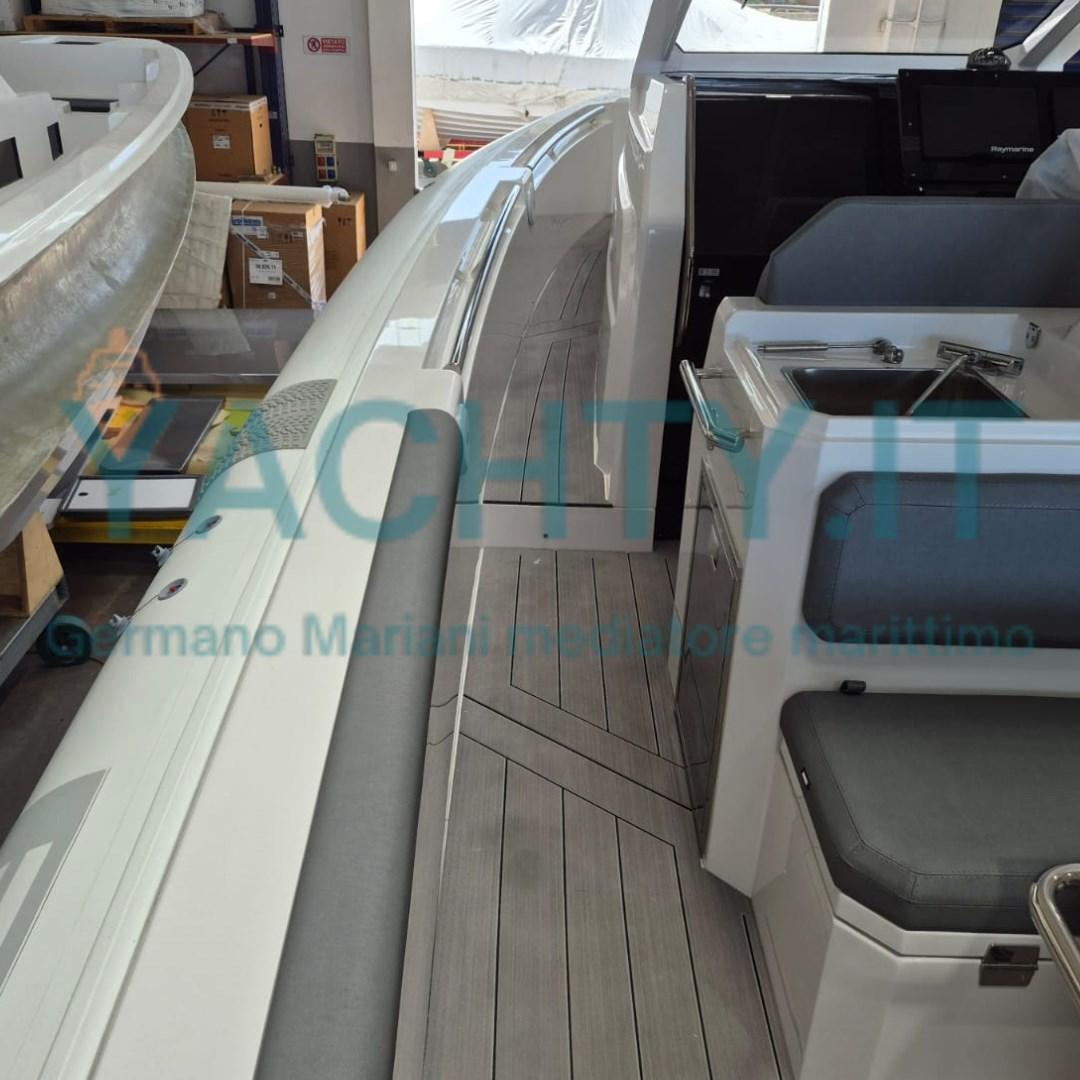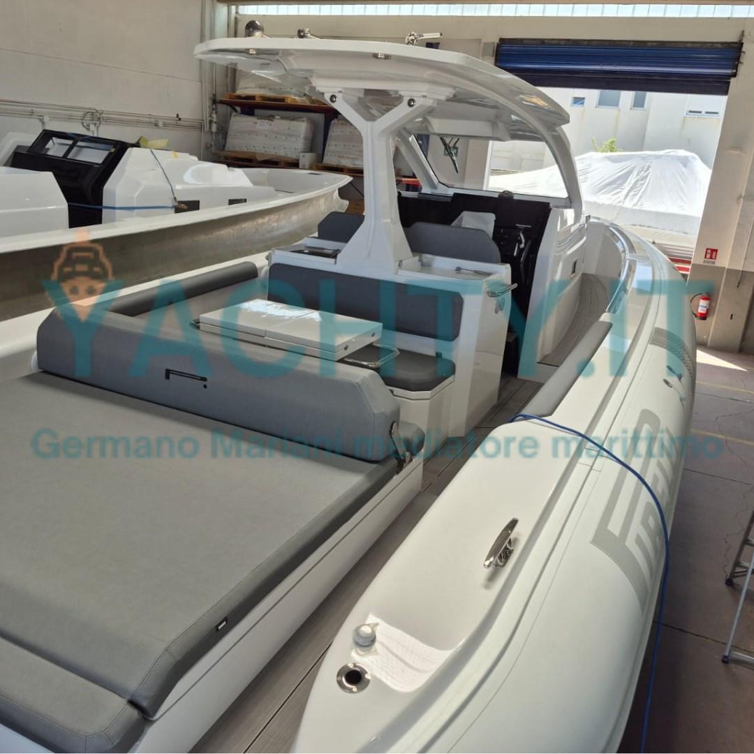 ROULEAU EN FIBRE DE VERRE AVEC MARCHEPIED, HUBLOTS LATÉRAUX, DOSSIER BASCULANT À L’ARRIÈRE, FEUX DE NAVIGATION LED, ÉCLAIRAGE LED DANS LA CABINE