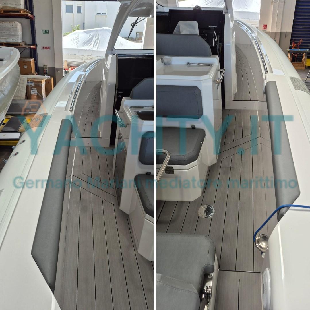 PONT DE LA PASSERELLE ARRIÈRE EN SEADEK GRIS AVEC JOINTS NOIRS, GONFLEUR ÉLECTRIQUE, ISOLATEUR GALVANIQUE