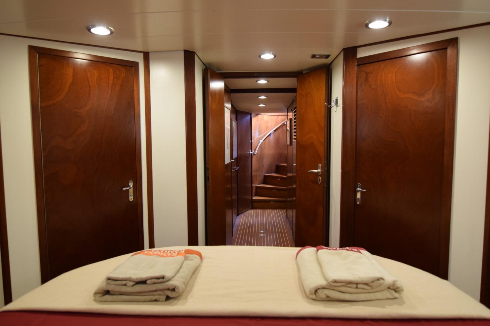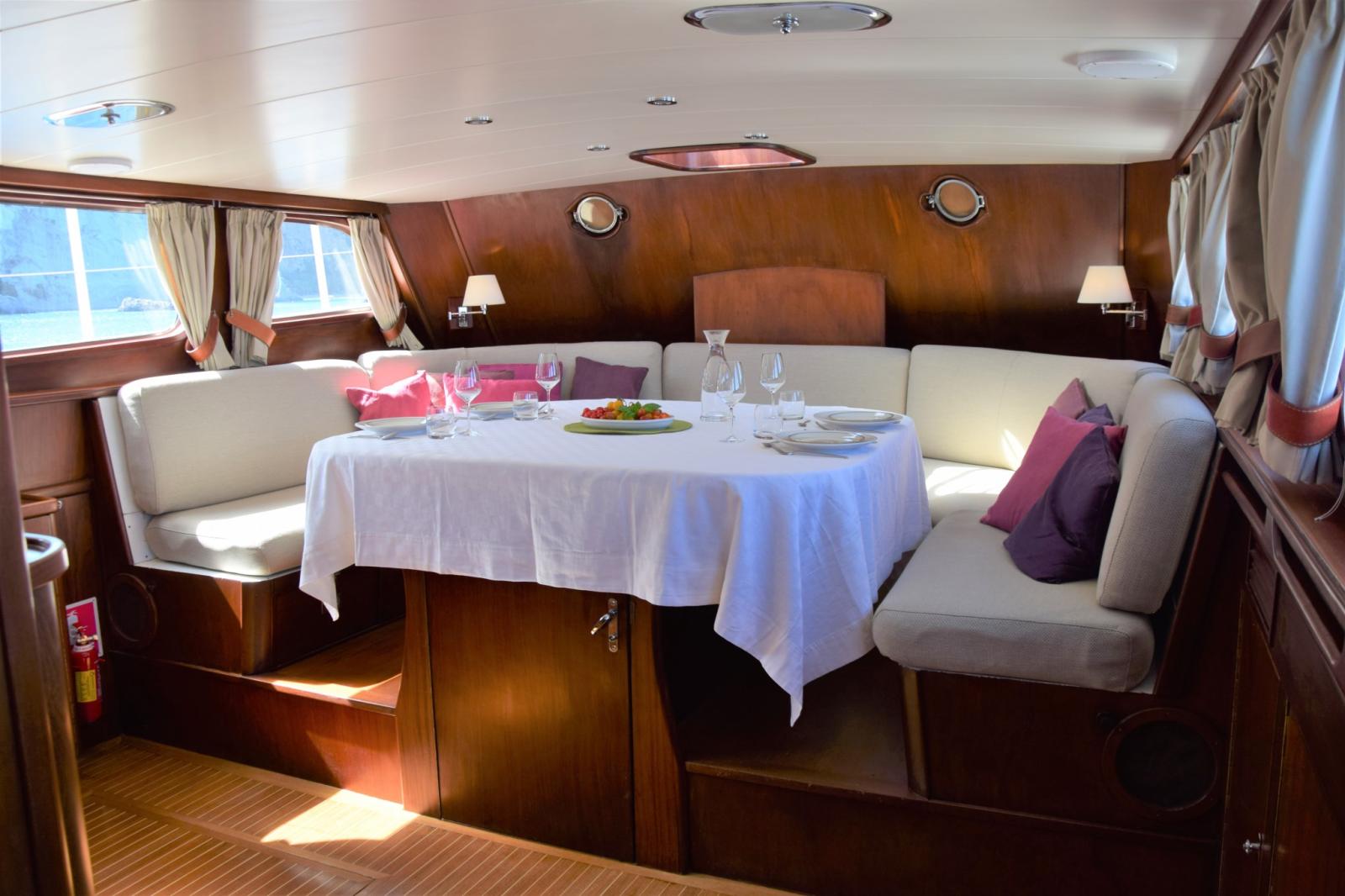 Véritable yacht à déplacement, le RAMONA offre une excellente stabilité, sécurité et confort en mer, renforcés par sa construction en acier et ses voiles de stabilisation. Ses intérieurs, finis dans de beaux bois, offrent des espaces de vie chaleureux et bien équilibrés, idéaux pour de longues croisières.