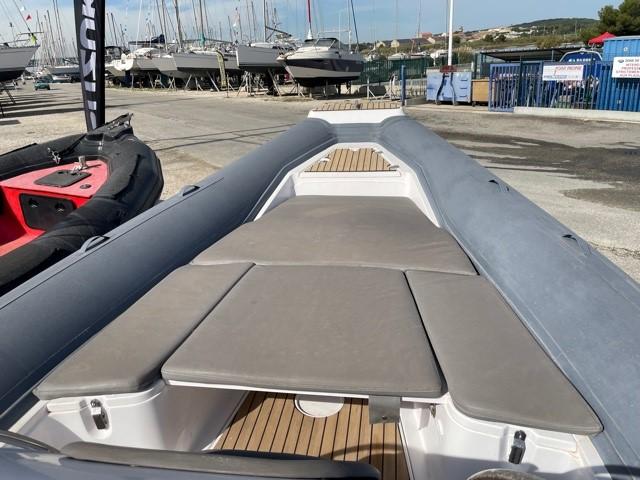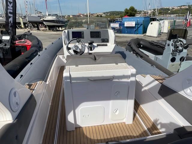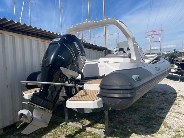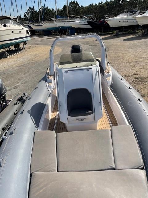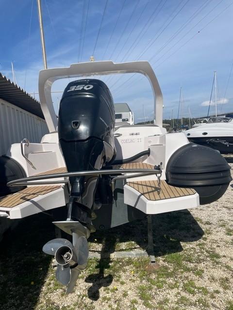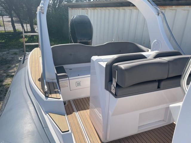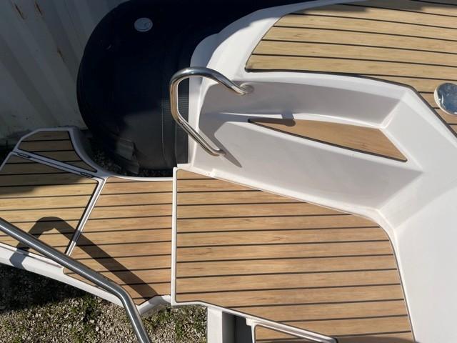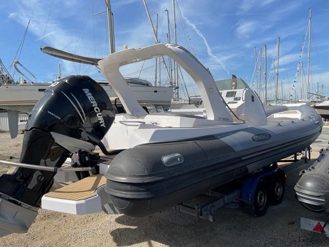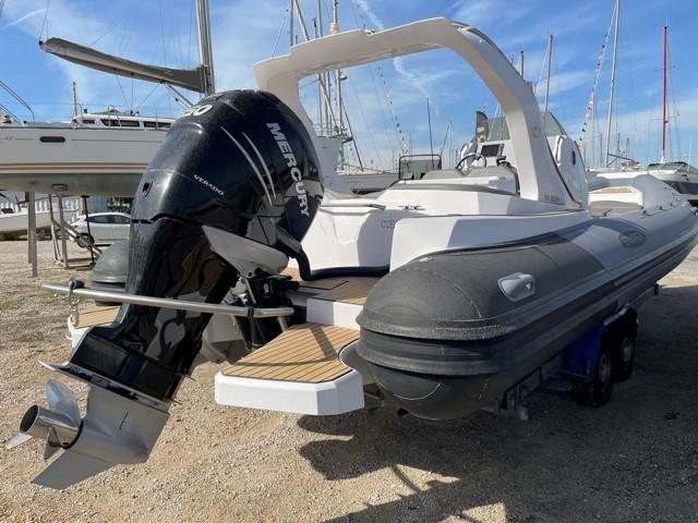 Performance grâce à son moteur 4 temps **MERCURY RACING 350CV**(170h), confort en navigation grâce à sa carène en V prononcé et farniente et liberté de mouvement grâce à son plan de Pont.