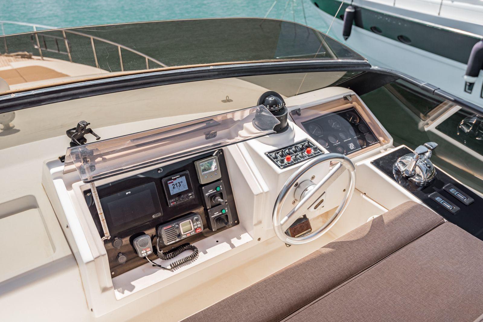 Alarme moteur, 2 Eau sous pression, 8 Batteries, Chargeur de batterie (Quicksilver), Flaps hydrauliques, Passerelle (Besenzoni), Plateforme arrière (maggiorata), Pompe de cale manuelle, Pont en teck, Cockpit en teck, Prise de quai, Onduleur, Rollbar, Guindeau électrique, 2 Echelle de bain, table de cockpit, Annexe (Zodiac 370 e 30HP), Corne, Winch électrique arrière.