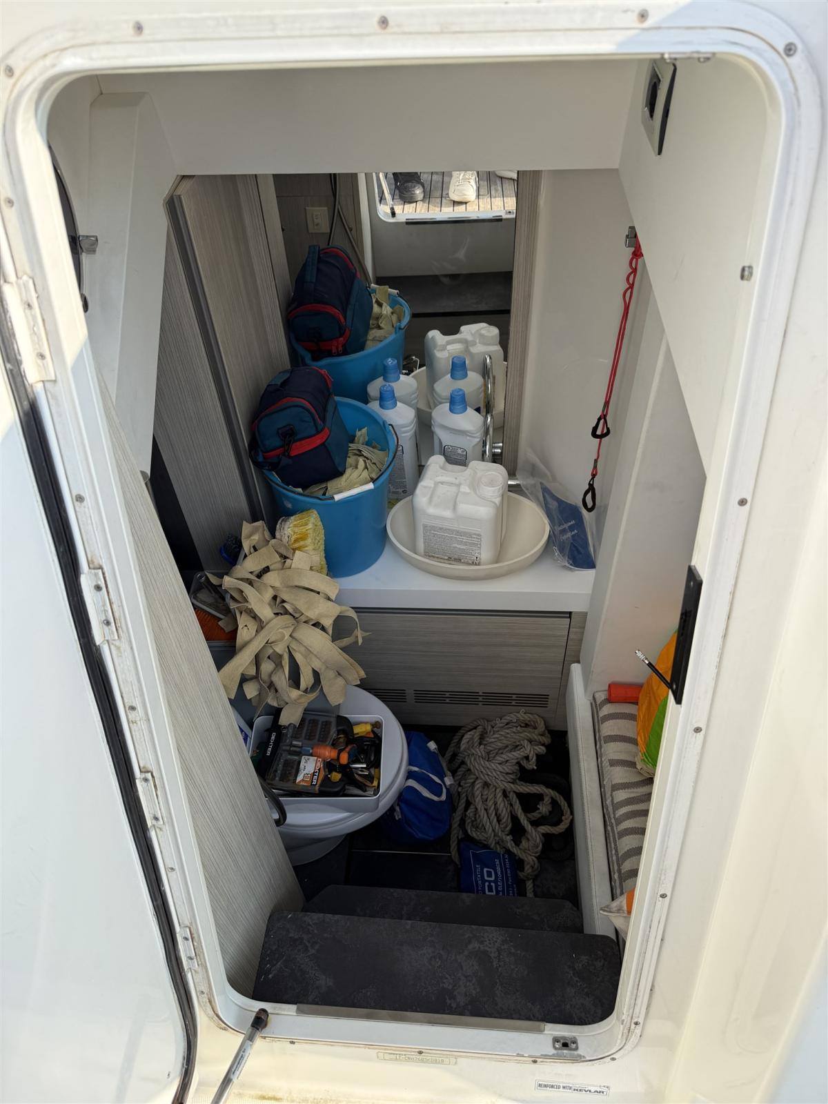 Indicateur d'angle de barre, Antenne radar, Commande électrique, Ordinateur fixe de bord, DSC VHF, Joystick, Plotter GPS, Siège copilote, Yacht controller (TERZA STAZIONE A POPPA).