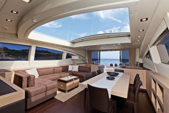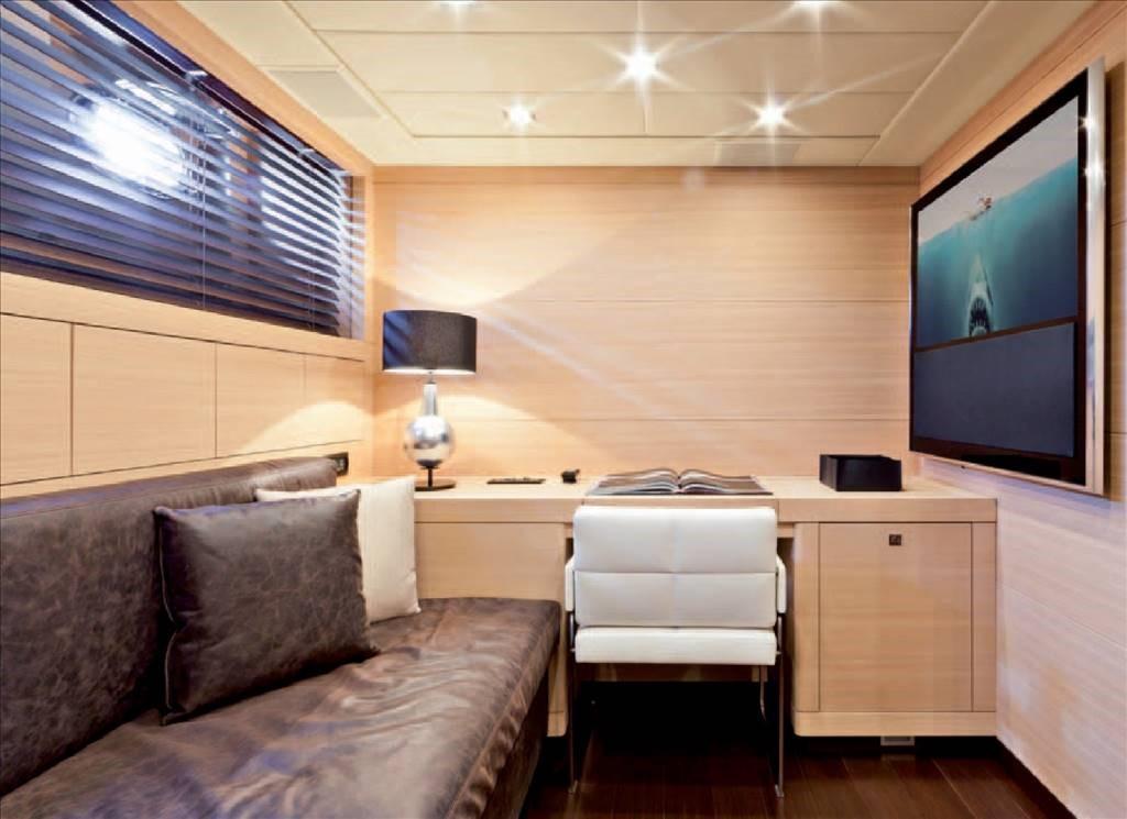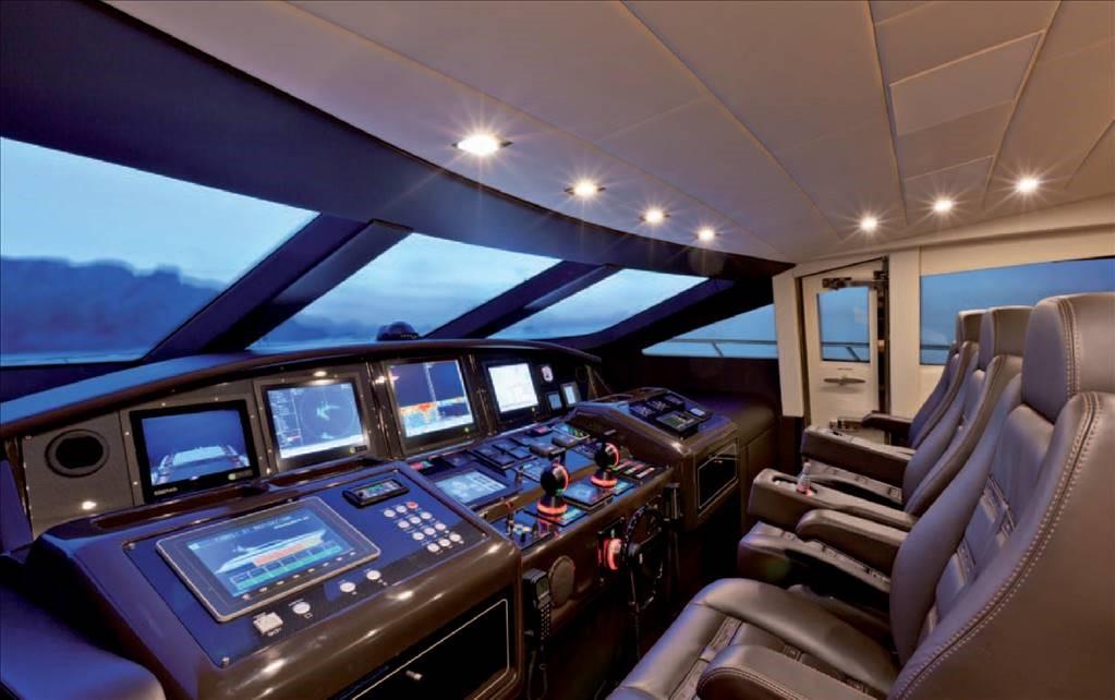 Alarme gaz, Alarme moteur, Alarme de pompe de cale, Eau sous pression, Passavant en teck, Douche de cockpit, Phare de poursuite, Flaps électriques, Garage à annexe, Hard top (ELETTRICO), Extincteur(s) fixe(s), Indicateurs de flaps, Lavage de chaine, Éclairage de courtoisie, Spots sous-marins, Passerelle (IDRAULICA), Plateforme arrière, Pompe de cale automatique, Pompe de cale manuelle, Porte latérale, Porte latérale, Cockpit en teck, Prise de quai, Connexion eau sous pression à quai, Rollbar, Guindeau Hydraulique, Echelle de bain, Stabilisateurs (SMART GYRO), table de cockpit, Corne, Winch électrique arrière.