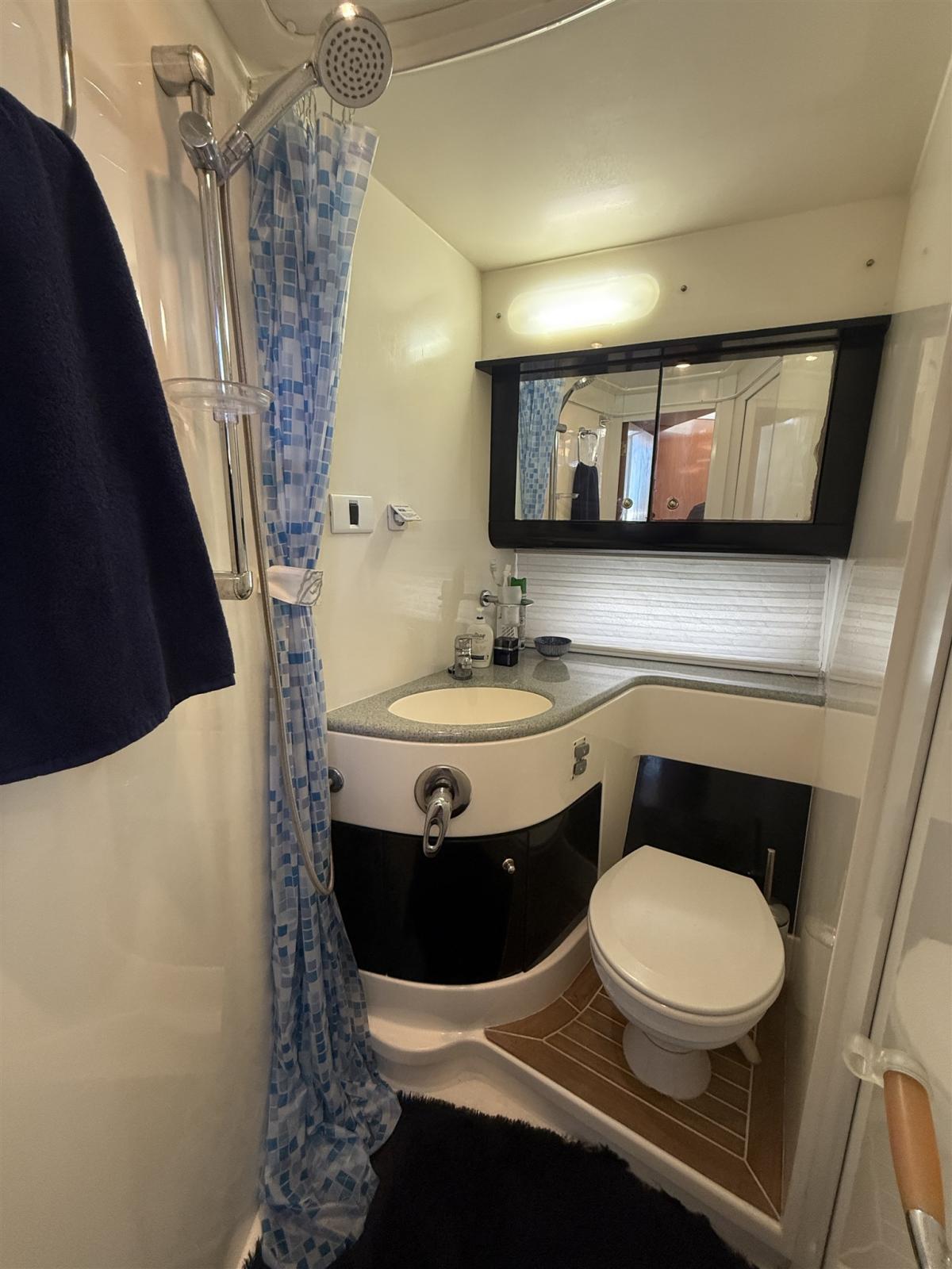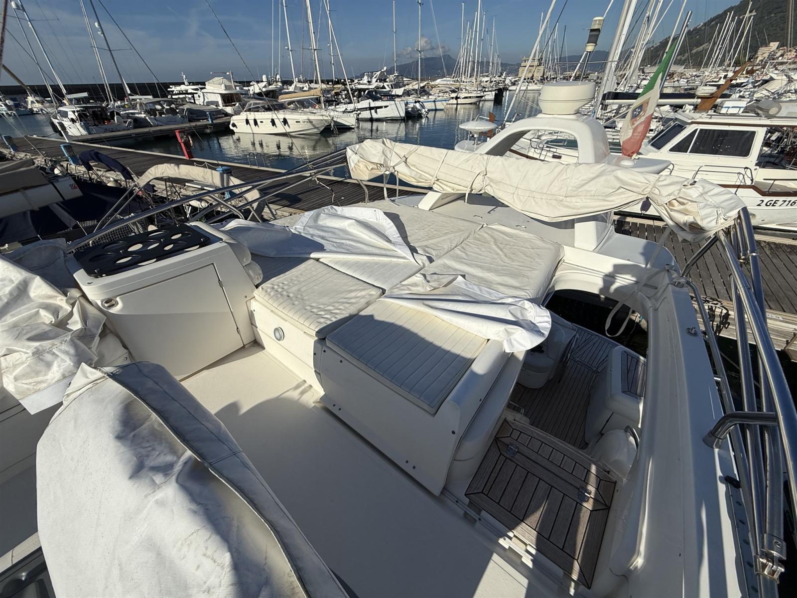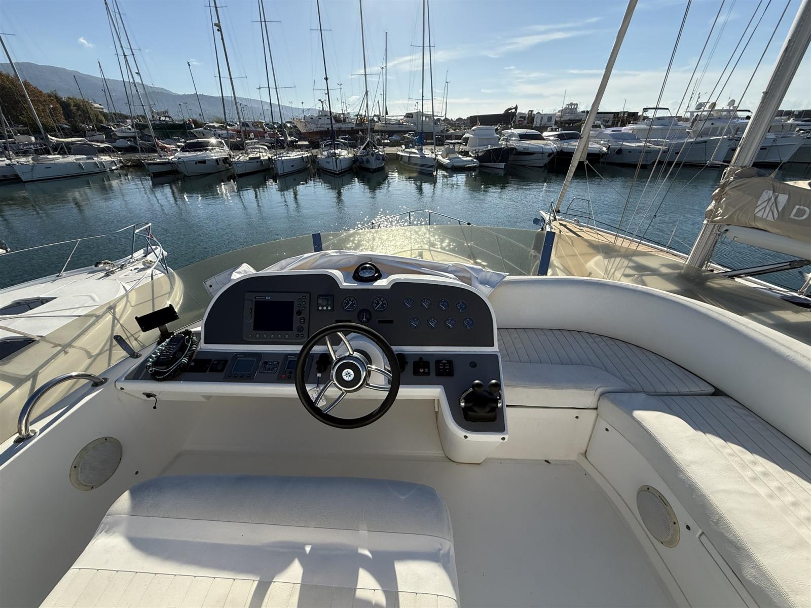 Alarme moteur, Alarme de pompe de cale, Alternateur, Eau sous pression, Câble d’alimentation à quai, Filères, Douche de cockpit, Double barre à roue, Phare de poursuite, Flaps électriques, Extincteur(s) fixe(s), Indicateurs de flaps, Lavabo dans le cockpit, Éclairage de courtoisie, Spots sous-marins, Défenses, Passerelle, Plateforme arrière, Pompe de cale automatique, Pompe de cale manuelle, Porte latérale, Cockpit en teck, Prise de quai, Répétiteur électronique, Rollbar, Guindeau électrique, Echelle de bain, table de cockpit, Filières avec sortie latèrale, Corne.