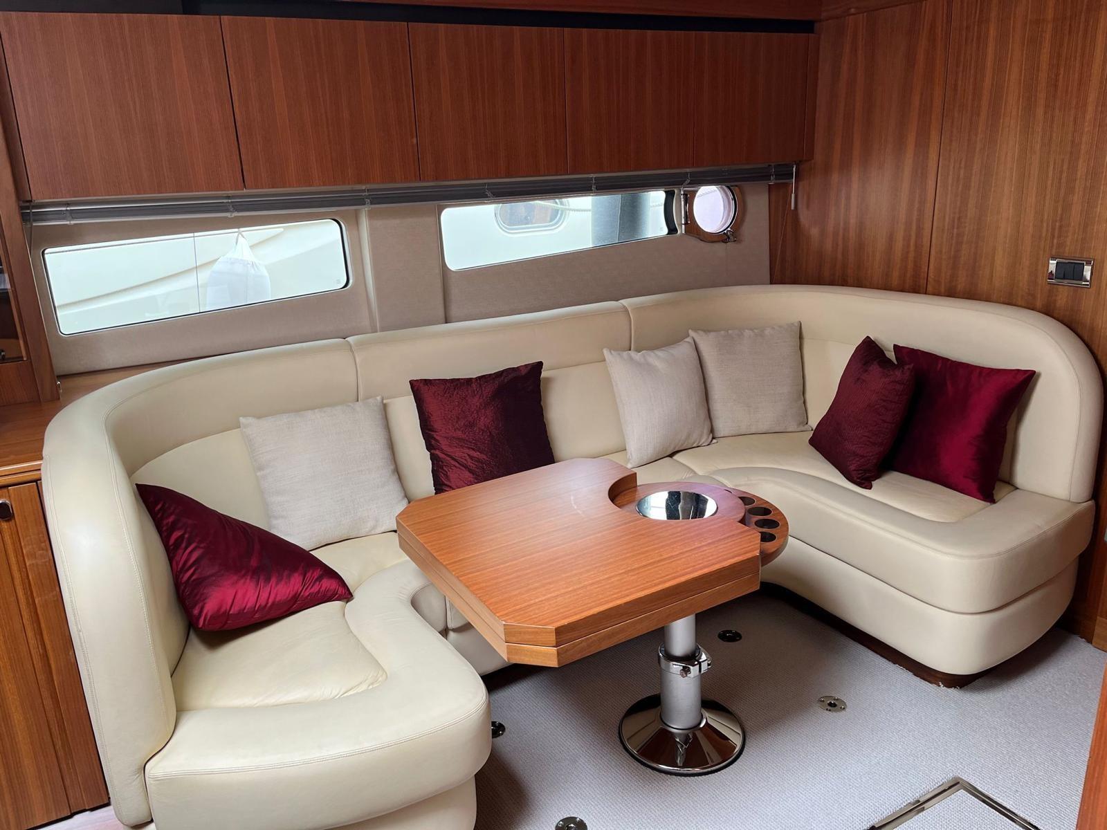 Alarme moteur, Alarme de pompe de cale, Alternateur, Ouverture du compartiment moteur électrique, Eau sous pression, Douche de cockpit, Flaps électriques, Hard top, Extincteur(s) fixe(s), Lavabo dans le cockpit, Éclairage de courtoisie, Spots sous-marins, Plateforme arrière, Pompe de cale automatique, Pompe de cale manuelle, Porte latérale, Cockpit en teck, Prise de quai, Guindeau électrique, Echelle de bain, table de cockpit, Table pliante de salon, Filières avec sortie latèrale, Corne.