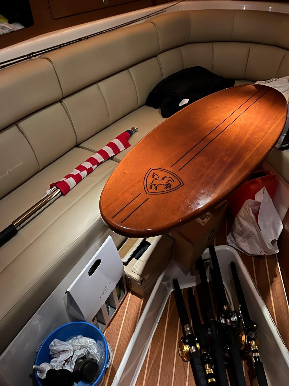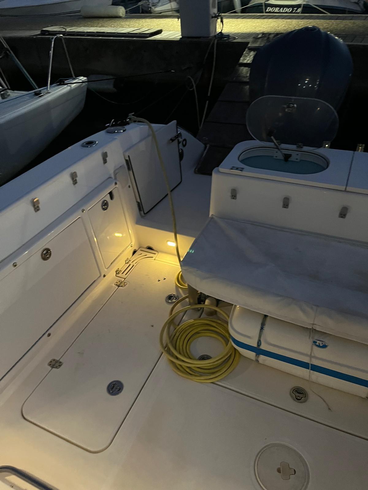 Alarme moteur, Eau sous pression, Couleur spéciale, Douche de cockpit, Lavabo dans le cockpit, Éclairage de courtoisie, Pompe de cale automatique, Prise de quai, Guindeau électrique, Table pliante de salon, Corne.