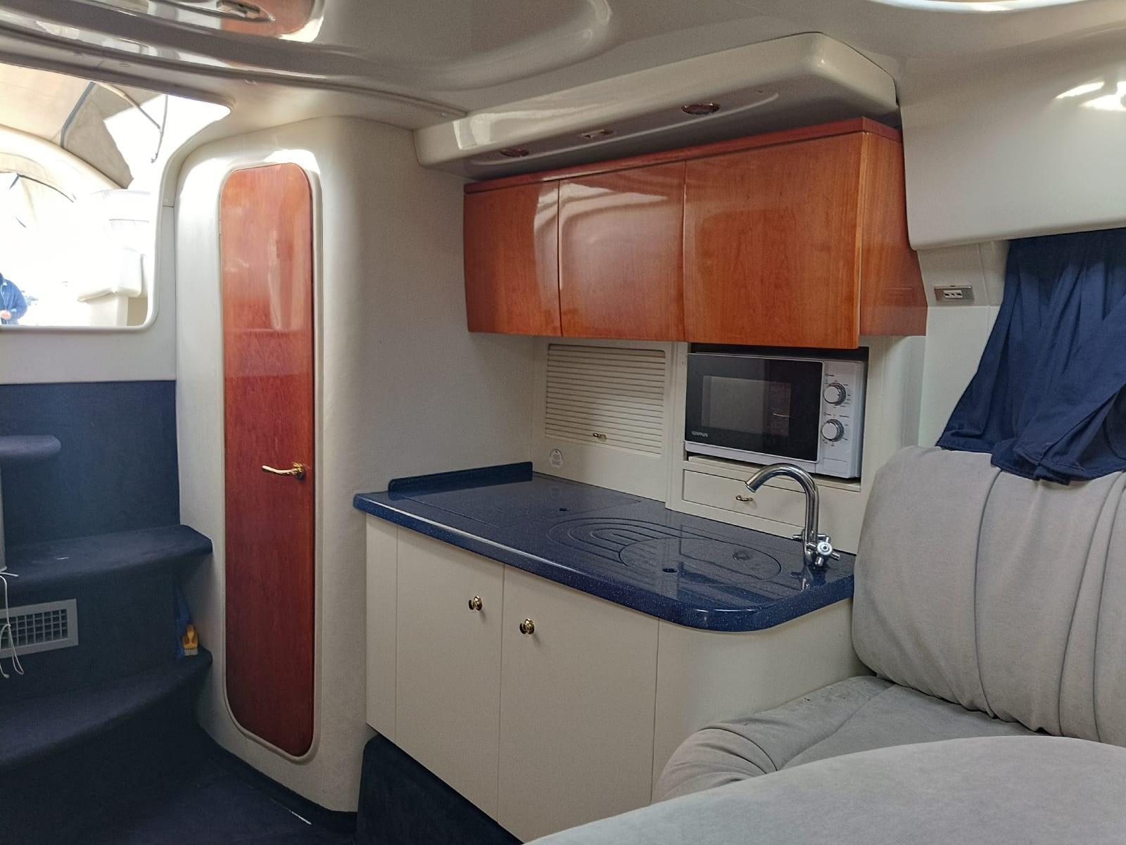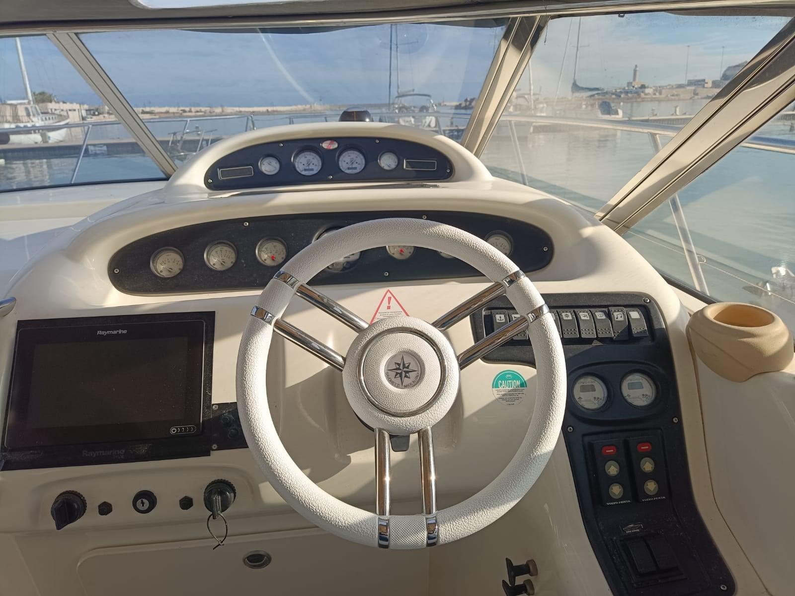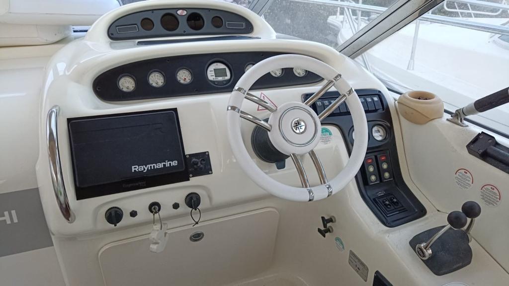 Alarme moteur, Alarme de pompe de cale, Eau sous pression, Douche de cockpit, Flaps électriques, Flaps hydrauliques, Garage à annexe, Plateforme arrière, Pompe de cale automatique, Cockpit en teck, Prise de quai, Rollbar, Guindeau électrique, Echelle de bain, table de cockpit, Table pliante de salon, Corne.