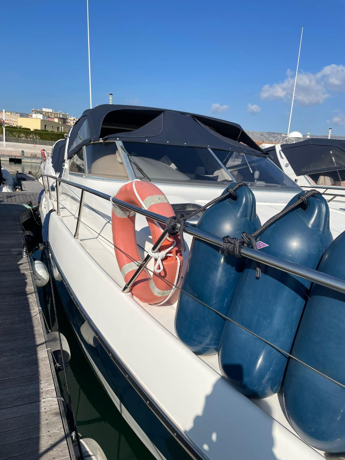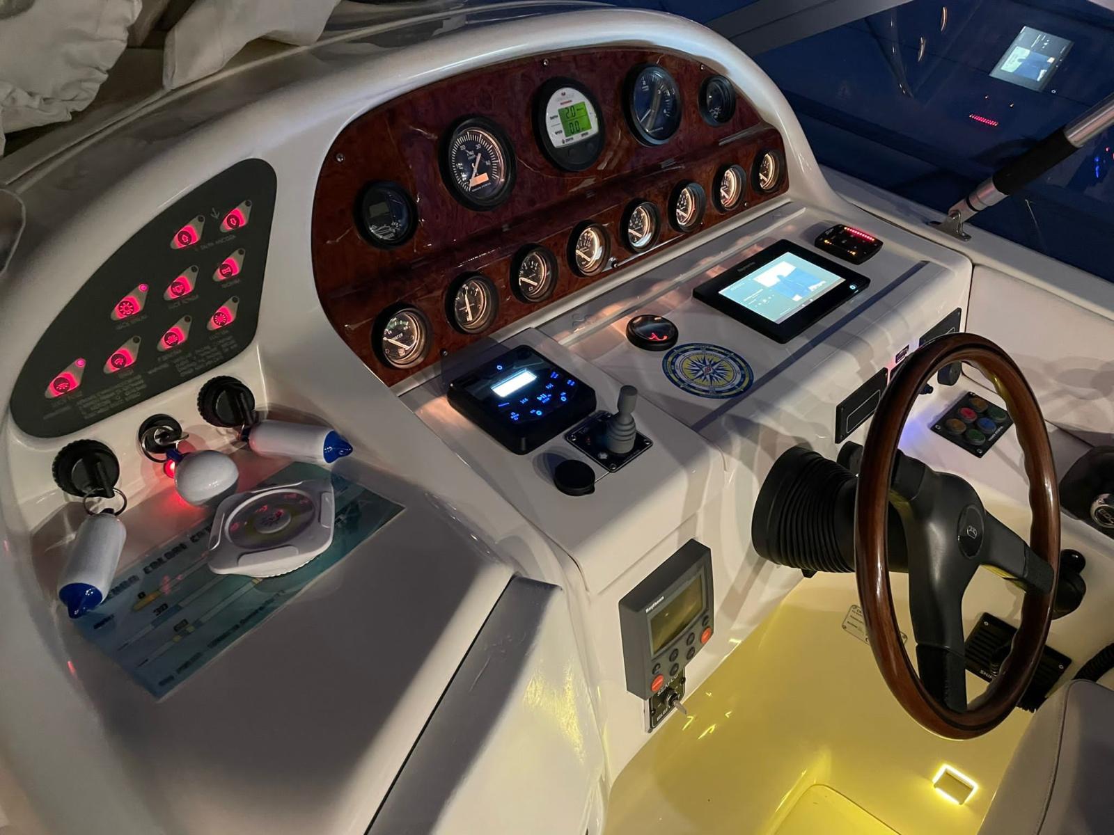 Alarme gaz, Alarme moteur, Alarme de pompe de cale, Eau sous pression, Douche de cockpit, Flaps électriques, Extincteur(s) fixe(s), Passerelle, Plateforme arrière, Pompe de cale automatique, Cockpit en teck, Prise de quai, Onduleur, Rollbar, Guindeau électrique, Echelle de bain, table de cockpit, Corne, Winch électrique avant.
