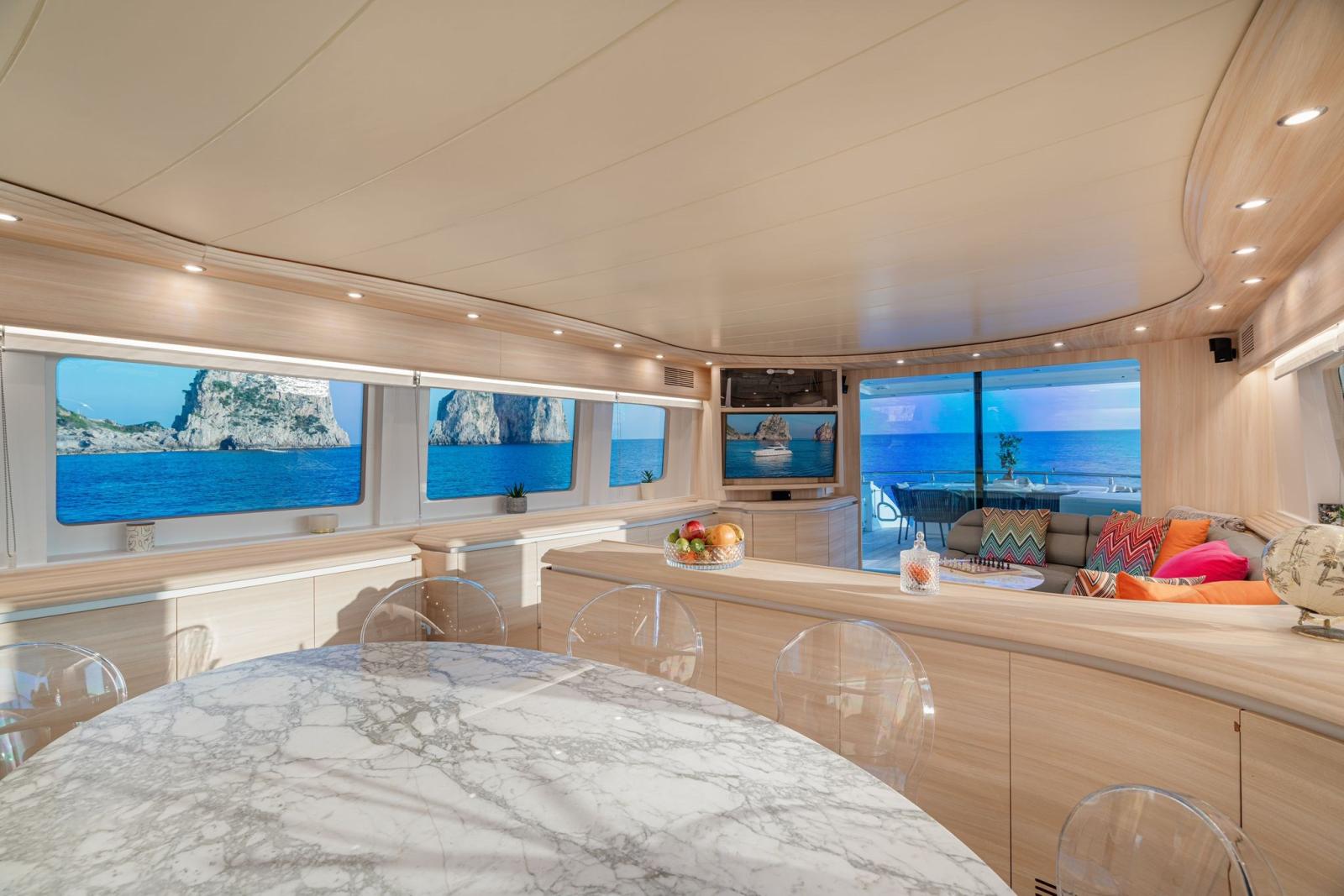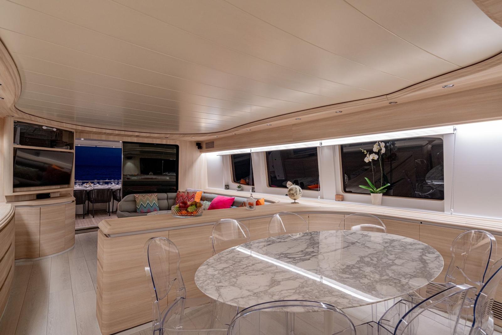 BBQ/ Grill, Ballon d'eau chaude, Coffre-fort, Air Conditionné, Connexion à internet, Dessalinisateur, Cuve à eaux noires, Plancher intérieur en bois, Prises interieures 12v, Prises interieures 220v, Réservoir d'eau noire, Caméra vidéo, Toilettes électriques.