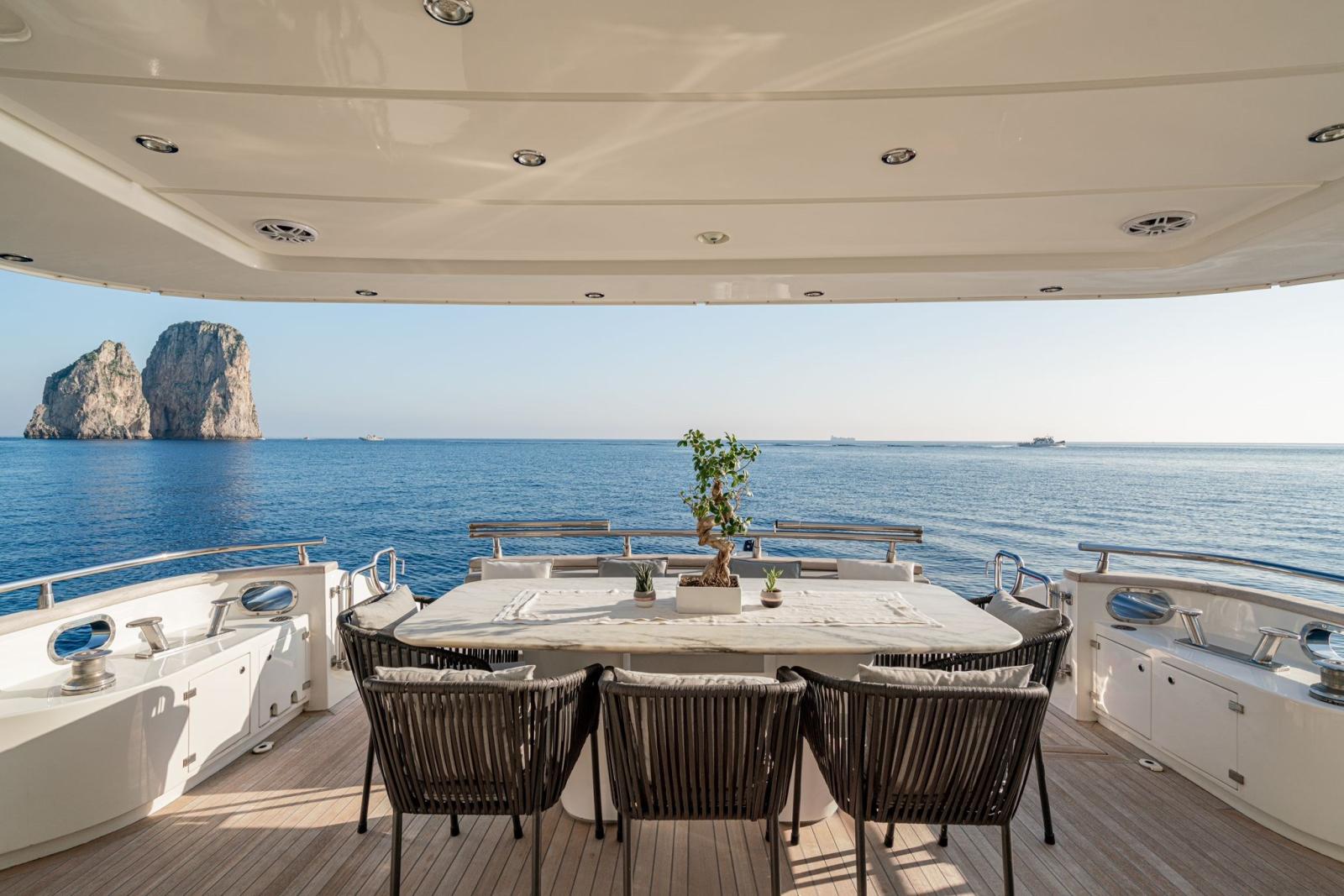 Alarme gaz, Alarme moteur, Alarme de pompe de cale, Alternateur, Eau sous pression, Passavant en teck, Couleur spéciale, Douche de cockpit, Flaps hydrauliques, Garage à annexe, Bossoirs pour annexe, Extincteur(s) fixe(s), Lavage de chaine, Éclairage de courtoisie, Spots sous-marins, Passerelle (IRAULICA), Pompe de cale automatique, Pompe de cale manuelle, Pont en teck, Porte latérale, Porte latérale, Cockpit en teck, Prise de quai, Connexion eau sous pression à quai, Onduleur, Rollbar, 2 Guindeau Hydraulique, Echelle de bain, Stabilisateurs, table de cockpit, Annexe, Filières avec sortie latèrale, Winch hydraulique, Winch électrique arrière, Winch électrique avant.