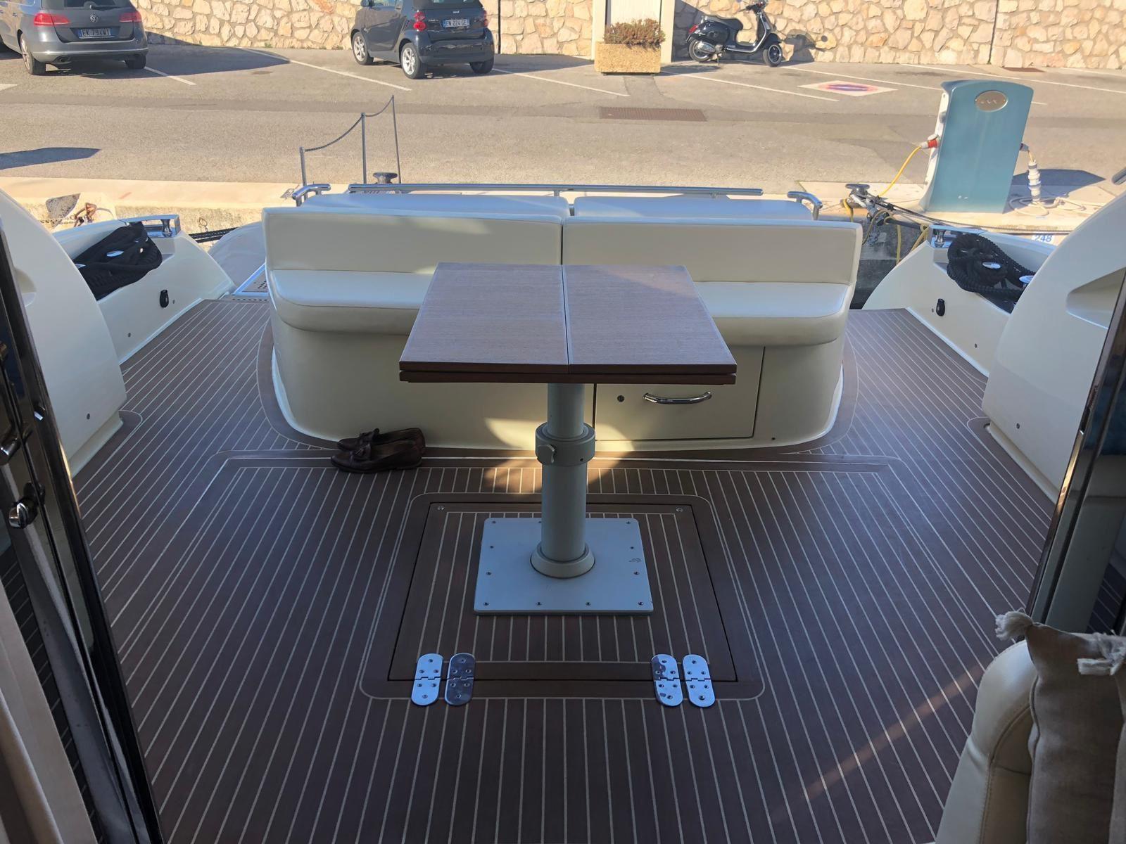 Alarme gaz, Alarme moteur, Alarme de pompe de cale, Eau sous pression, Flaps hydrauliques, Hard top, Extincteur(s) fixe(s), Éclairage de courtoisie, Pompe de cale automatique, Pompe de cale manuelle, Prise de quai, Guindeau Hydraulique, Echelle de bain, Corne, Winch électrique arrière.