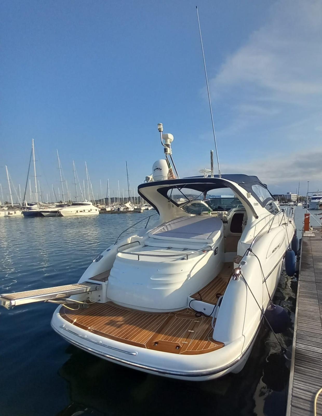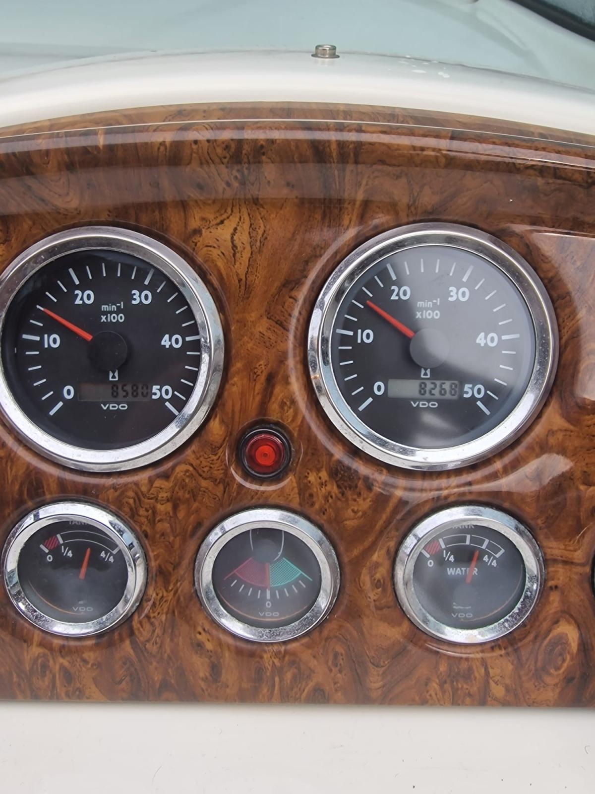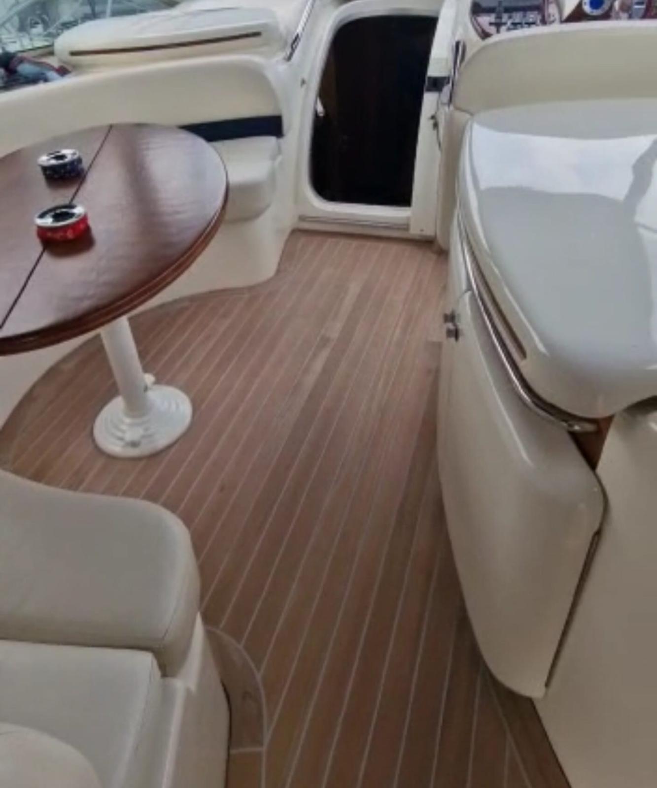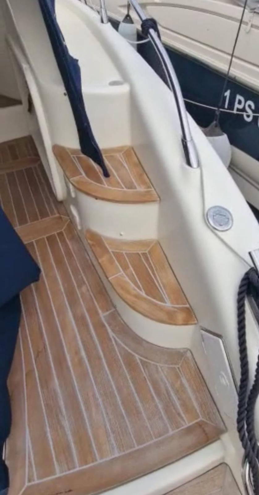 Alarme moteur, Ouverture du compartiment moteur électrique, Eau sous pression, Douche de cockpit (calda e fredda), Phare de poursuite, Flaps hydrauliques, Lavabo dans le cockpit, Éclairage de courtoisie, Plateforme arrière, Pompe de cale automatique, Cockpit en teck, Prise de quai, Connexion eau sous pression à quai, Onduleur, Guindeau électrique, Echelle de bain, table de cockpit.