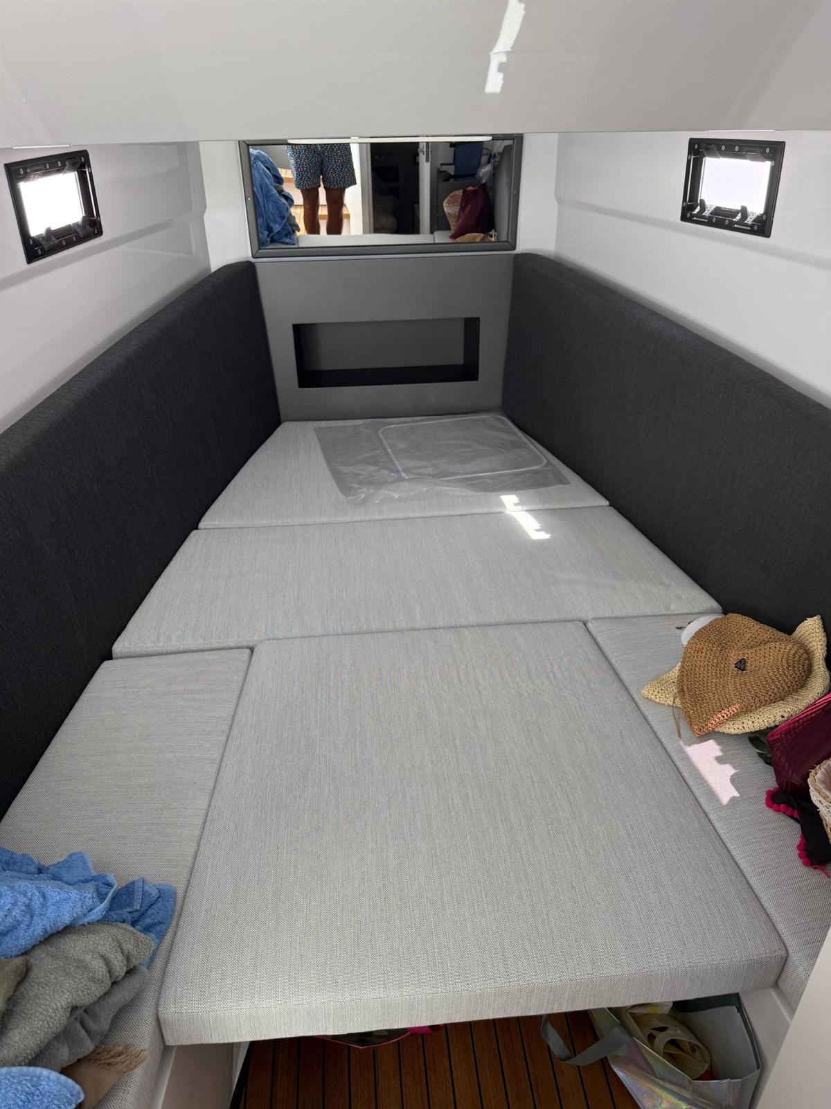 Sellerie complète, Coussins arrieres, Coussin avant, sellerie de cockpit, Taud de console, Taud de siège, Taud de soleil (a prua con pali in carbonio).