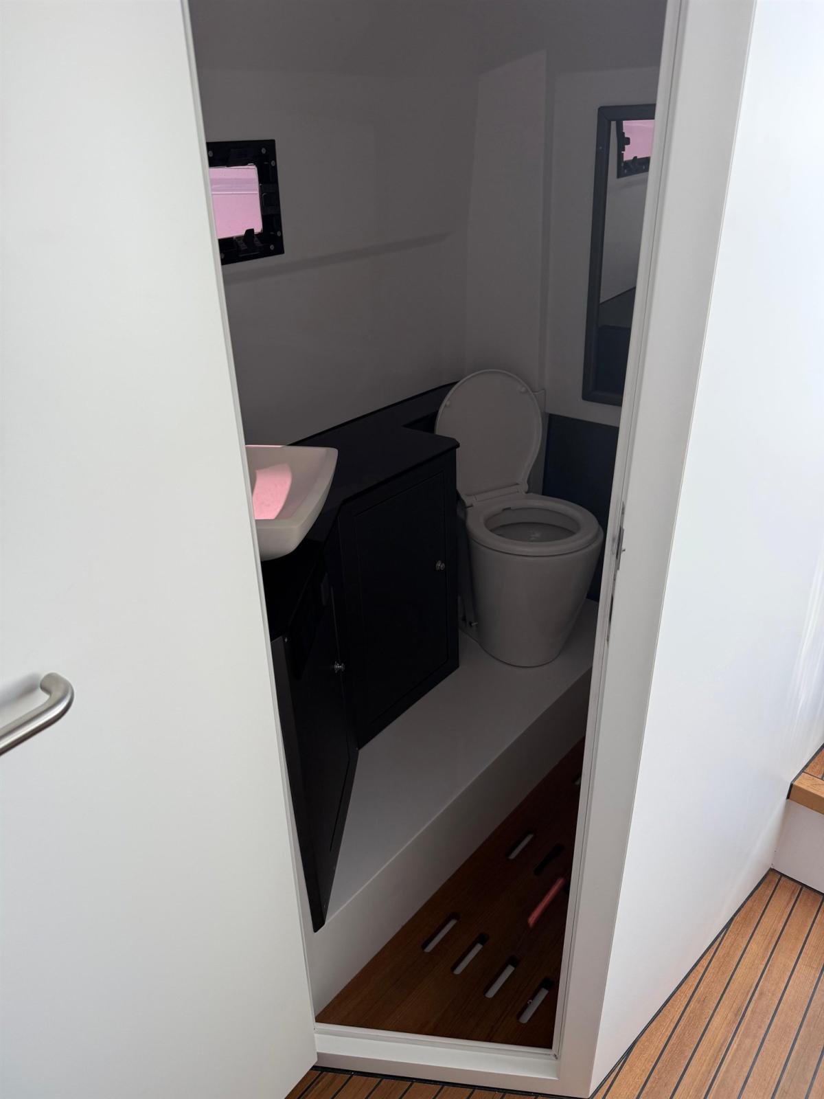 Alarme moteur, Alarme de pompe de cale, Alternateur, Ancre (e catena in inox), Eau sous pression, Taquets pliants, Passavant en teck, Câble d’alimentation à quai, Douche de cockpit, Lavabo dans le cockpit, Éclairage de courtoisie, Spots sous-marins, Plateforme arrière, Pompe de cale automatique, Pompe de cale manuelle, Pont en teck, Cockpit en teck, Prise de quai, Guindeau électrique, Echelle de bain (+ seconda scaletta aggiuntiva), table de cockpit, Corne, T-Top (con prolunga in carbonio).