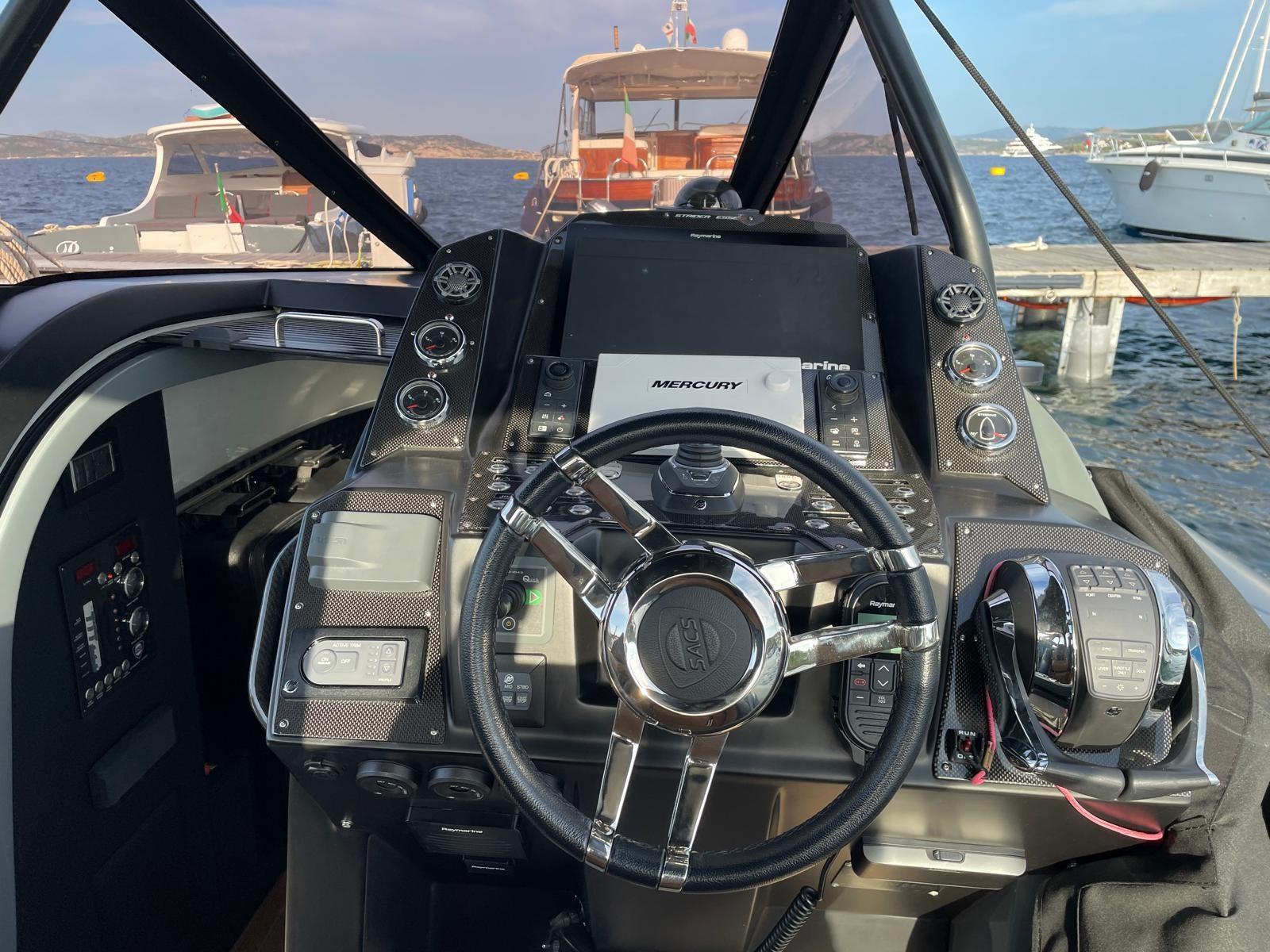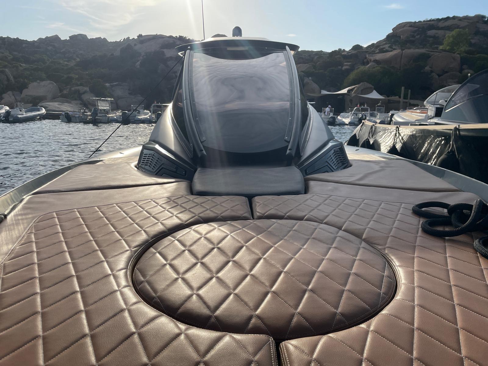 Alarme moteur, Alarme de pompe de cale, Alternateur, Auto Dynamic Trim Interceptor, Eau sous pression, Taquets pliants, Douche de cockpit, Lavabo dans le cockpit, Éclairage de courtoisie, Spots sous-marins, Pompe de cale automatique, Pompe de cale manuelle, Cockpit en teck, Prise de quai, Guindeau électrique, Echelle de bain, Table, Corne, T-Top.
