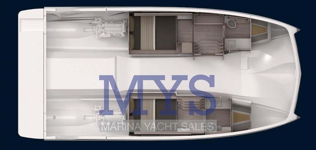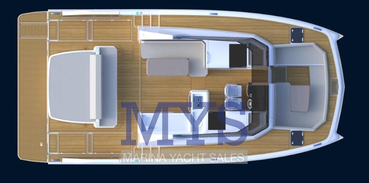 D’une longueur de 10.36 m, ce modèle 2026 est motorisé par Yanmar (250 CV) .
