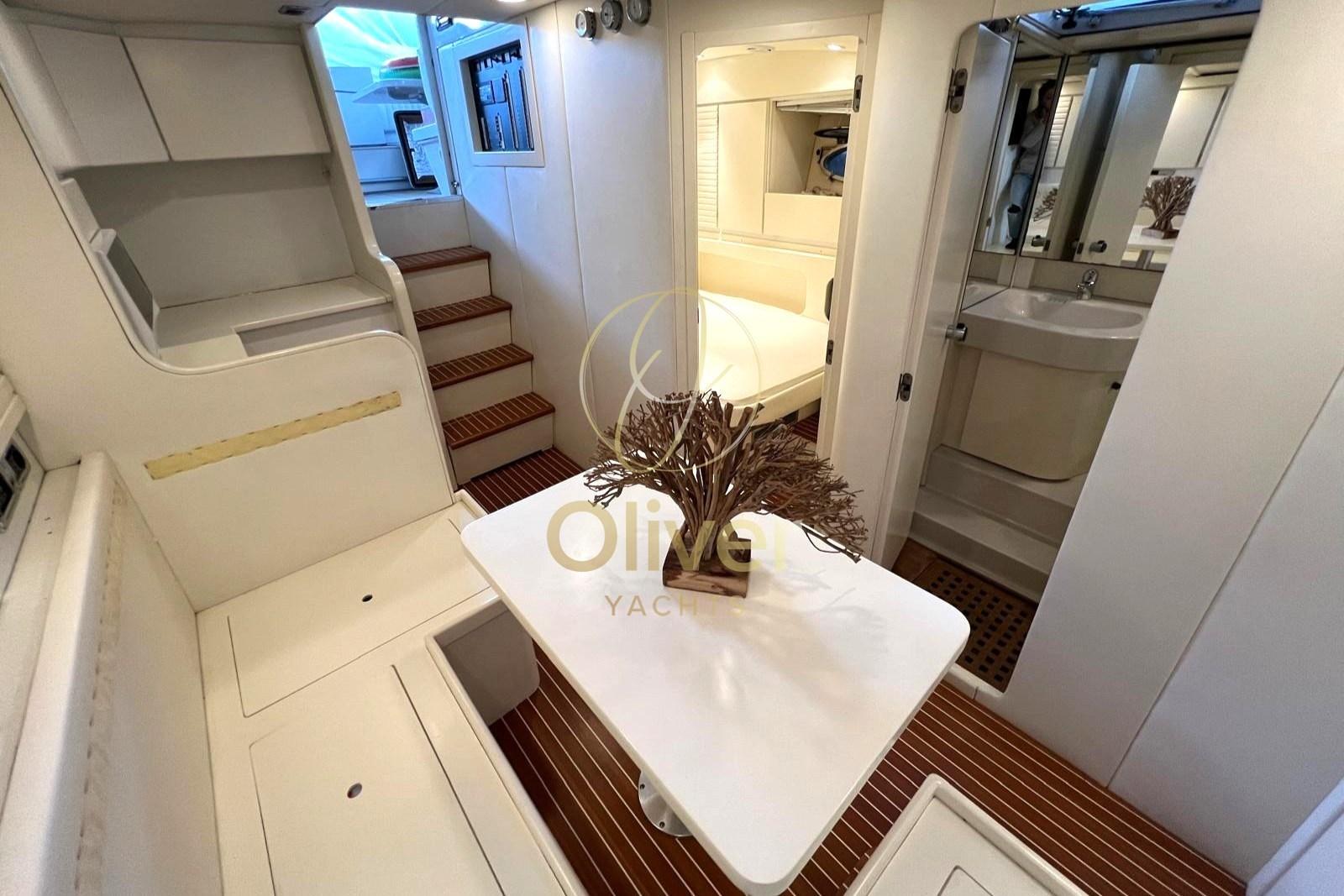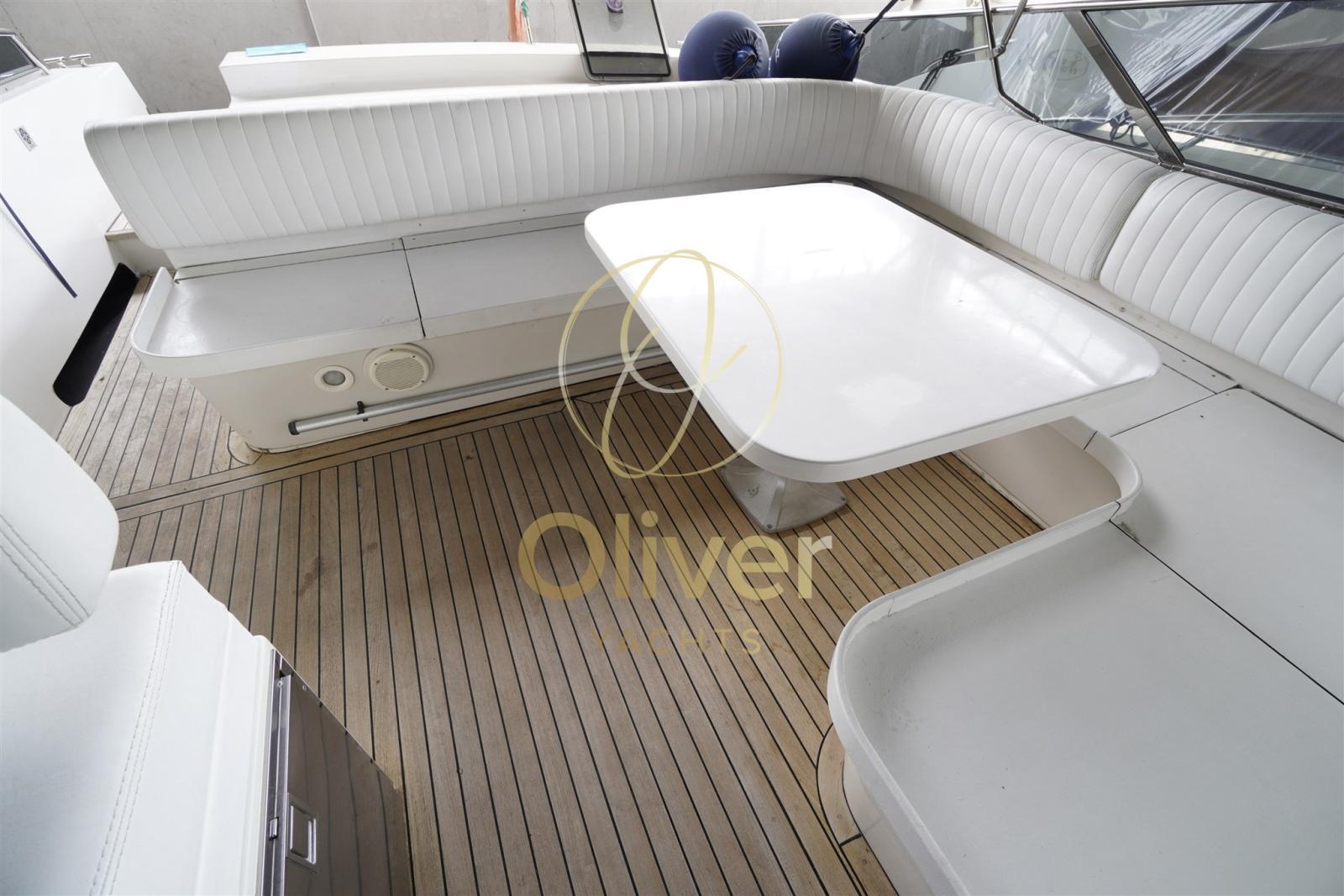 Alarme gaz, Alarme moteur, Alarme de pompe de cale, Alternateur, Ouverture du compartiment moteur électrique, Eau sous pression, Câble d’alimentation à quai, Filères, Douche de cockpit, Flaps électriques, Éclairage de courtoisie, Spots sous-marins, Moniteur de batterie, Défenses, Passerelle, Plateforme arrière, Pompe de cale automatique, Pompe de cale manuelle, Porte latérale, Cockpit en teck, Prise de quai, Connexion eau sous pression à quai, Guindeau électrique, Echelle de bain, table de cockpit, Corne.