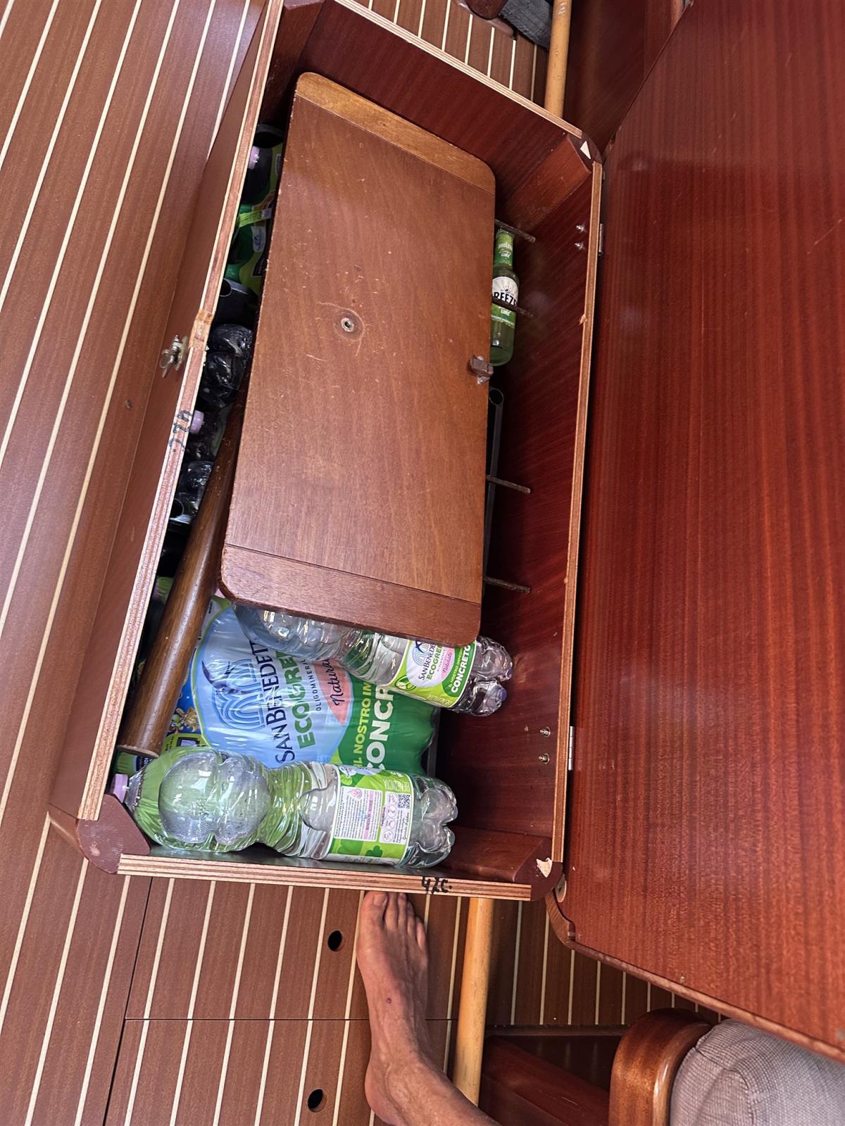 Alternateur, 2 Ancre (Delta 20 kg con 50 m catena da 10 del 2025 e CQR 19 kg con catena e cima), Eau sous pression, Radeau de sauvetage (8 pax revisionata), 4 Batteries (Fiamm 2026 : 1 motore 80 amp e 3 servizi da 140 amp), Passavant en teck (Ino0cllato sottovuoto da ripristinare), Chargeur de batterie (Quick SBC 500), Câble d’alimentation à quai, Douche de cockpit, Propulseur d'étrave (Vetus 80 1999 Solenoide 2025), Moniteur de batterie (Mastervolt BTMIII 2024), Moteur hors-bord pour annexe (Mercury 4 cv 2015), Défenses (6), Passerelle (inox e teak pieghevole), Plateforme arrière (Ribaltabile), Pompe de cale automatique, Pompe de cale manuelle, Pont en teck (Incollato sottovuoto), Cockpit en teck, Prise de quai, Onduleur, Guindeau électrique (Simpson Lawrence con radiocomando Quick), Gréement monotoron, Echelle de bain, Système de filtration des eaux usées (Con cassaa inox e pompa elettrica), Chaise support HB, table de cockpit, Table pliante de salon, Annexe (Eurovinil 270), Filières avec sortie latèrale (Rifatta), Pont en teck (Incollata), 6 Winch (Harken Selftailing).