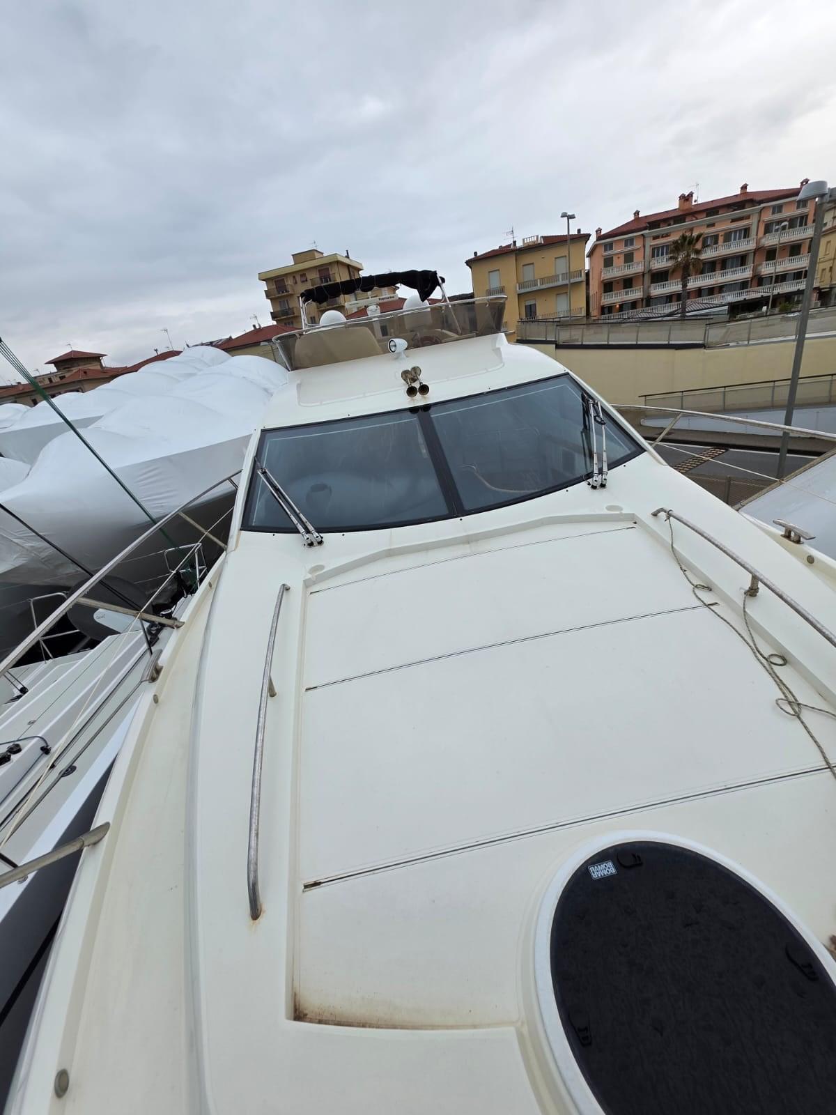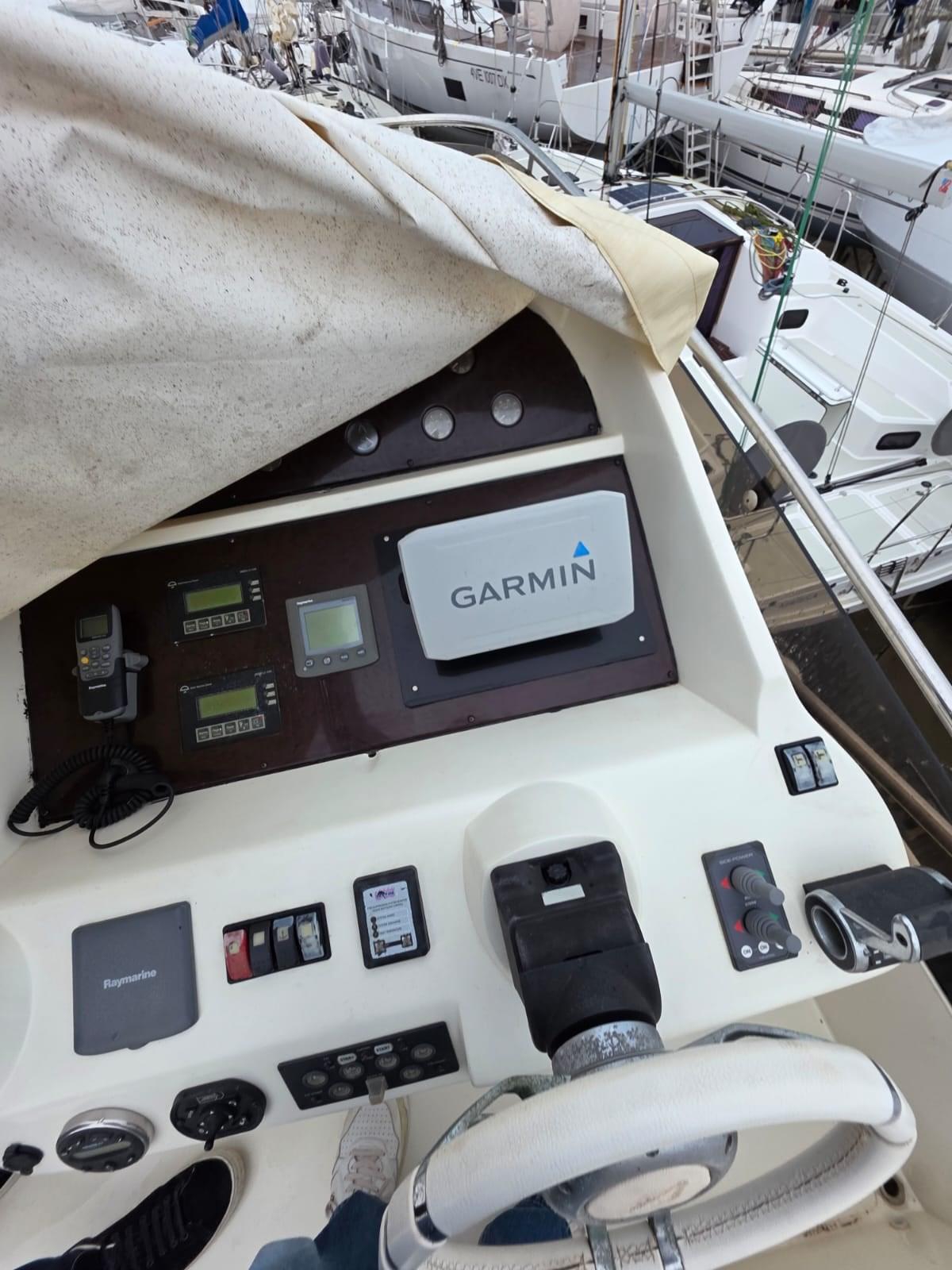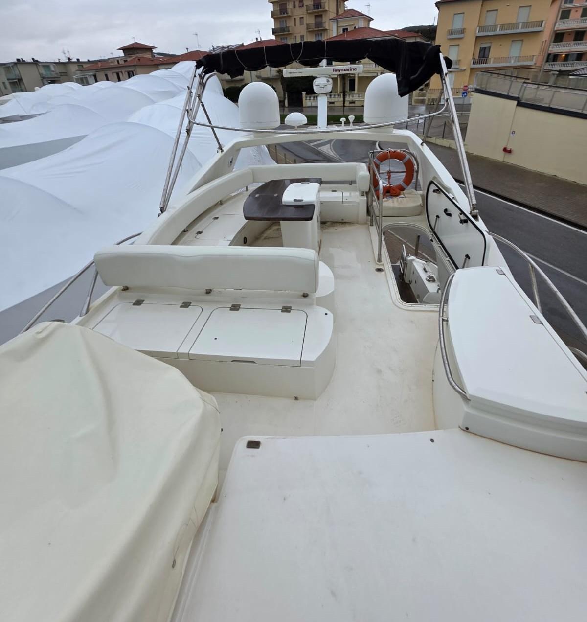 Alarme moteur, Alarme de pompe de cale, Alternateur, Eau sous pression, Câble d’alimentation à quai, Couleur spéciale (SCAFO BANDA BLU), Filères, Douche de cockpit, Double barre à roue, Phare de poursuite, Flaps électriques, Extincteur(s) fixe(s), Lavage de chaine, Éclairage de courtoisie, Spots sous-marins, Moniteur de batterie, Passerelle, Plateforme arrière (ELETTROIDRAULICA AFFONDABILE), Pompe de cale automatique, Porte latérale, Cockpit arrière, Cockpit en teck, Prise de quai, Répétiteur électronique, Rollbar, Guindeau électrique, Echelle de bain, table de cockpit, Corne, Winch électrique arrière.