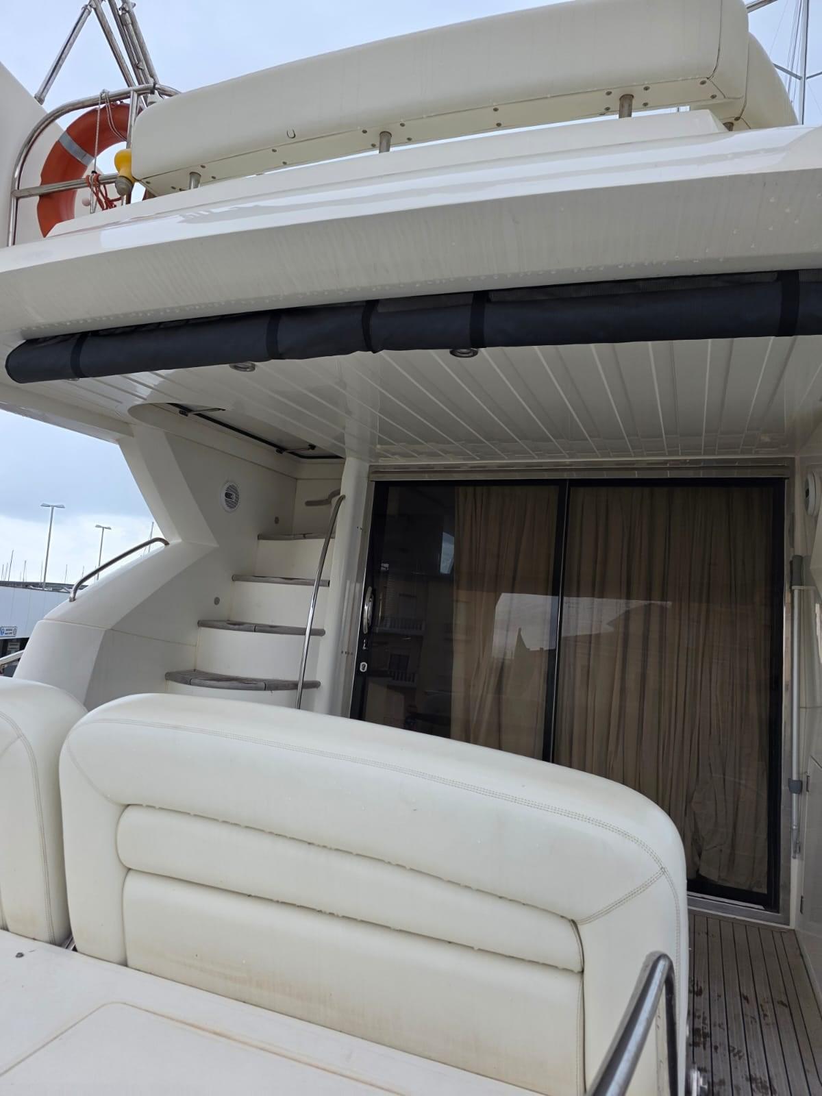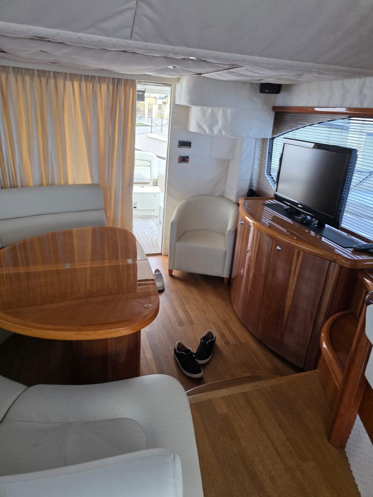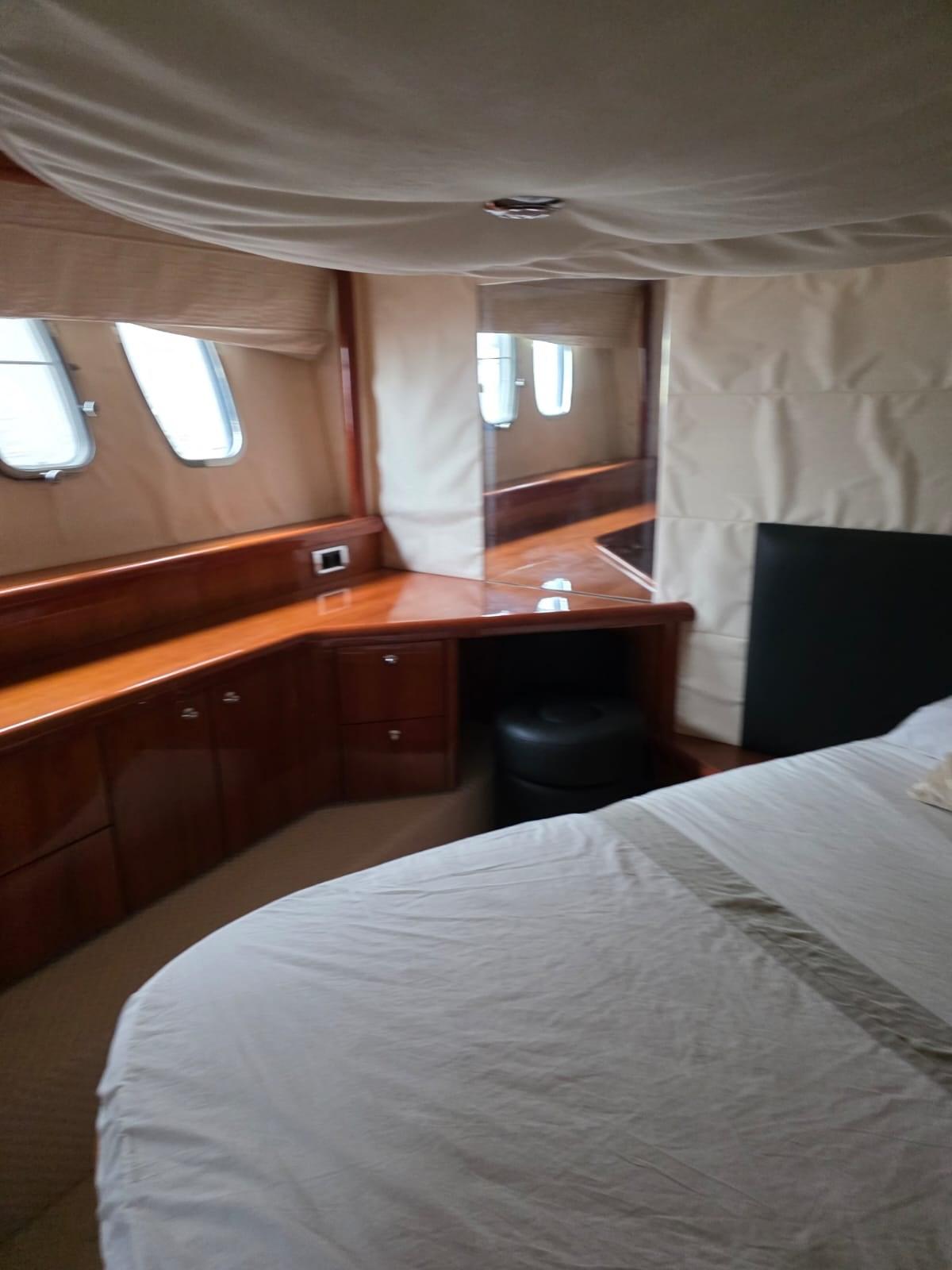 Alarme moteur, Alarme de pompe de cale, Alternateur, Eau sous pression, Câble d’alimentation à quai, Couleur spéciale (SCAFO BANDA BLU), Filères, Douche de cockpit, Double barre à roue, Phare de poursuite, Flaps électriques, Extincteur(s) fixe(s), Lavage de chaine, Éclairage de courtoisie, Spots sous-marins, Moniteur de batterie, Passerelle, Plateforme arrière (ELETTROIDRAULICA AFFONDABILE), Pompe de cale automatique, Porte latérale, Cockpit arrière, Cockpit en teck, Prise de quai, Répétiteur électronique, Rollbar, Guindeau électrique, Echelle de bain, table de cockpit, Corne, Winch électrique arrière.