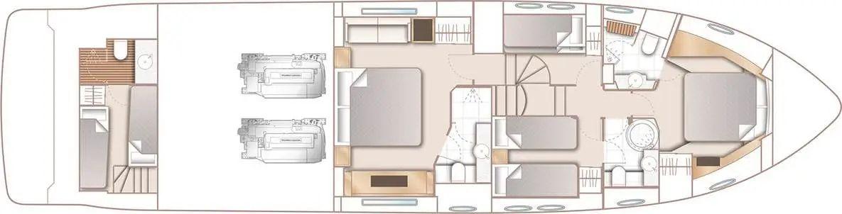 Construit en 2011, ce **Princess 64** bien-aimé a été entretenu avec une grande attention par son équipage. Elle offre un flybridge spacieux, quatre cabines sur le pont inférieur et un espace de vie principal ouvert et accueillant avec la cuisine. Sa plateforme de bain électro-hydraulique facilite le lancement et la récupération d'un jet rib de 3,25 m.