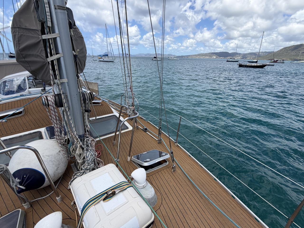 Une coursive avant tribord avec grand volume de stockage