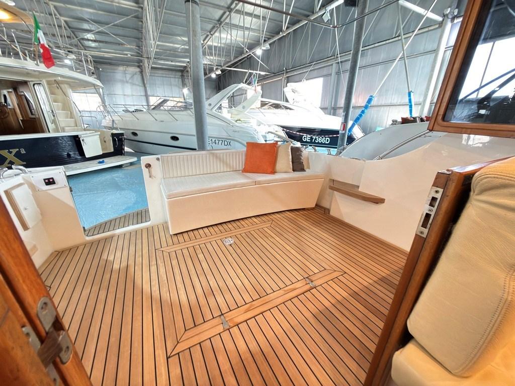 Auto Dynamic Trim Interceptor (Zipwake), Passerelle (Idraulica), Plateforme arrière (con fondo in teak), Pompe à Eau de Mer, Porte latérale (in legno), Cockpit en teck, Prise de quai, Guindeau électrique, Table pliante de salon, Winch électrique avant.