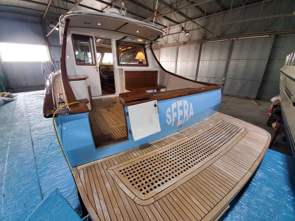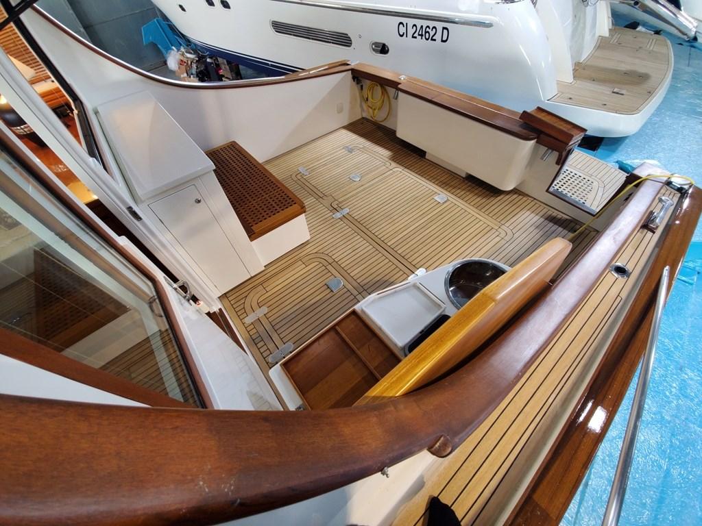 Eau sous pression, Passavant en teck (Nuovi 2021), Chargeur de batterie (Quik), Couleur spéciale (Fiancate Celeste), Douche de cockpit, Propulseur d'étrave (Lewmar), Flaps hydrauliques, Hard top (Apertura elettrica), Extincteur(s) fixe(s) (In sala macchine), Indicateurs de flaps, Éclairage de courtoisie, Plateforme arrière (In teack nuovo 2021 con centrale in carabbotino), Pompe de cale automatique, Cockpit en teck, Prise de quai, Connexion eau sous pression à quai, Guindeau électrique, Echelle de bain, Corne, Winch électrique avant.